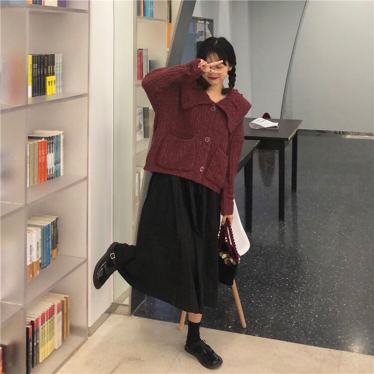 ✞ スタンダードレッドネイビーニットセーター ブラックスカート レトロ スウィート ✞ゴスロリ SM ミリ 甘ロリ クラロリ 和ロリ エレガント 黒ロリ 姫ロリ 華ロリ BB-BB33109359472