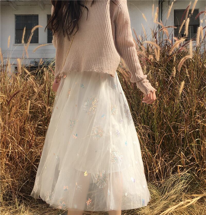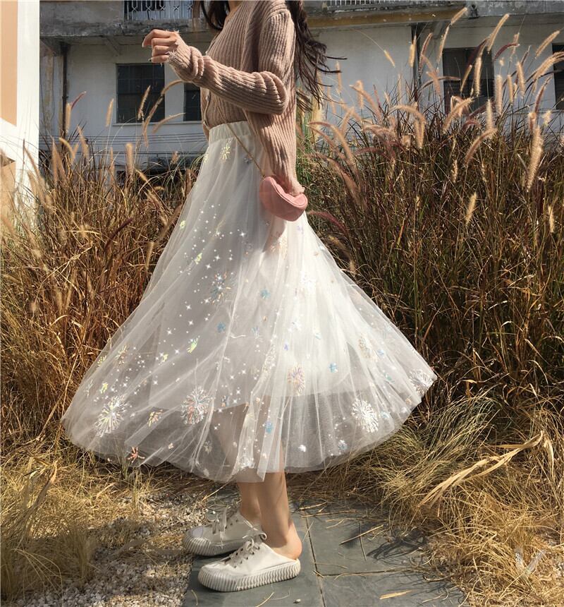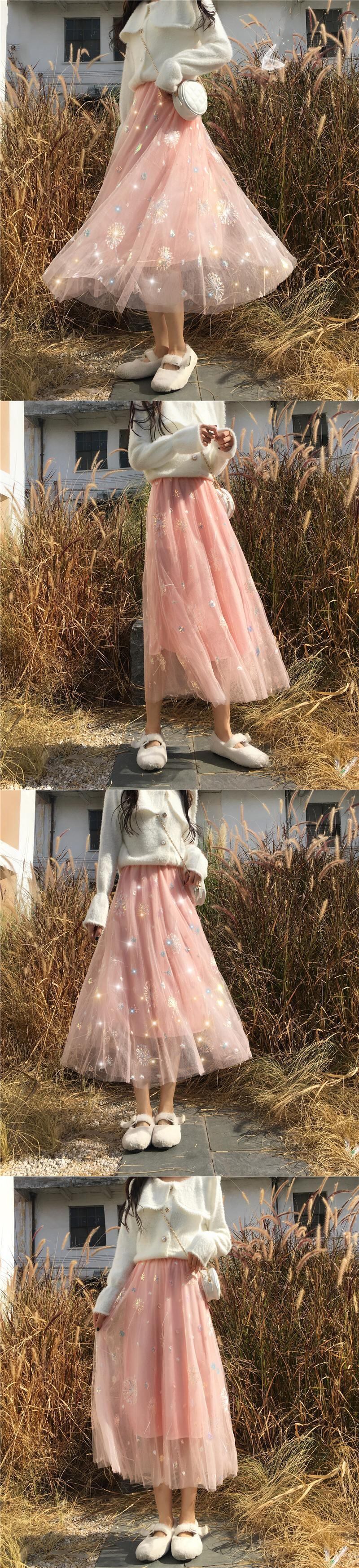 ✞ スカート ストレッチメッシュスパンコール刺繍Aライン エラスティック 伸縮 スウィート ✞ゴスロリ SM ミリ 甘ロリ クラロリ 和ロリ エレガント 黒ロリ 姫ロリ 華ロリ BB-BB29488792478