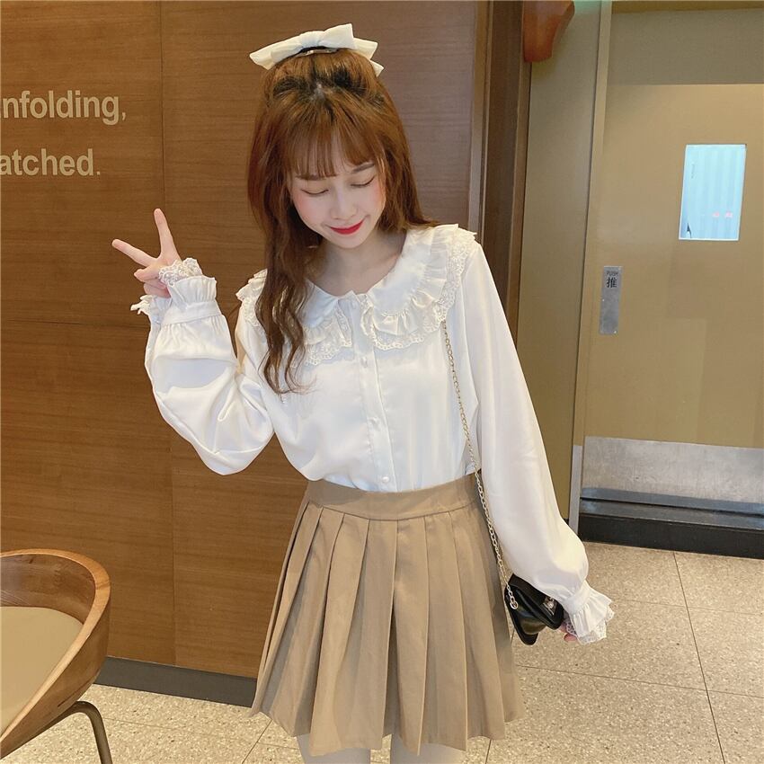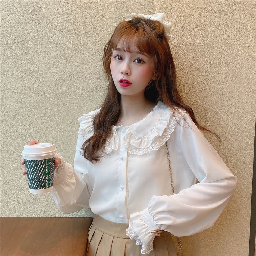 ✞ シャツブラウスレースリボン白 ロング ホワイト スウィート ステッチ ✞ゴスロリ SM ミリ 甘ロリ クラロリ 和ロリ エレガント 黒ロリ 姫ロリ 華ロリ BB-BB83743577001