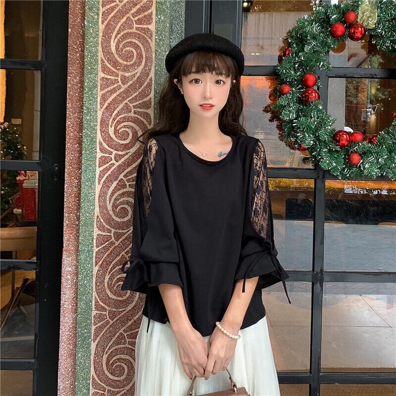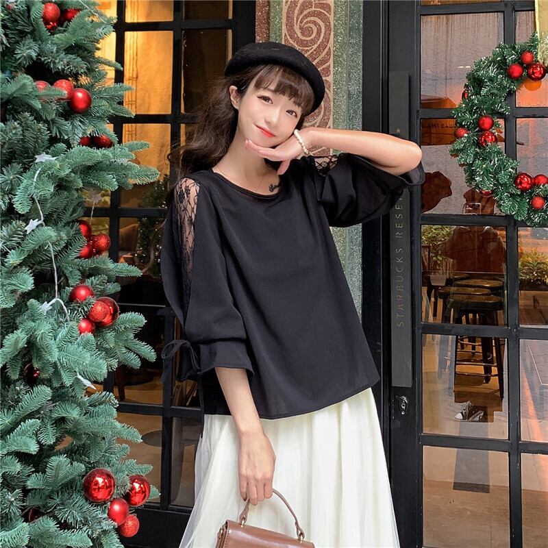 ✞ ラウンドネックレース白シャツブラウス ホワイト スウィート ステッチ ✞ゴスロリ SM ミリ 甘ロリ クラロリ 和ロリ エレガント 黒ロリ 姫ロリ 華ロリ BB-BB25707575884