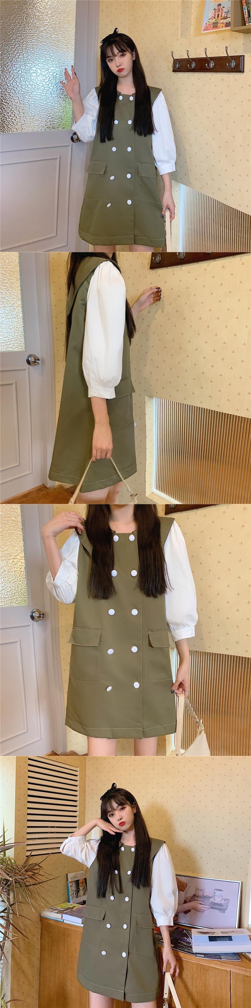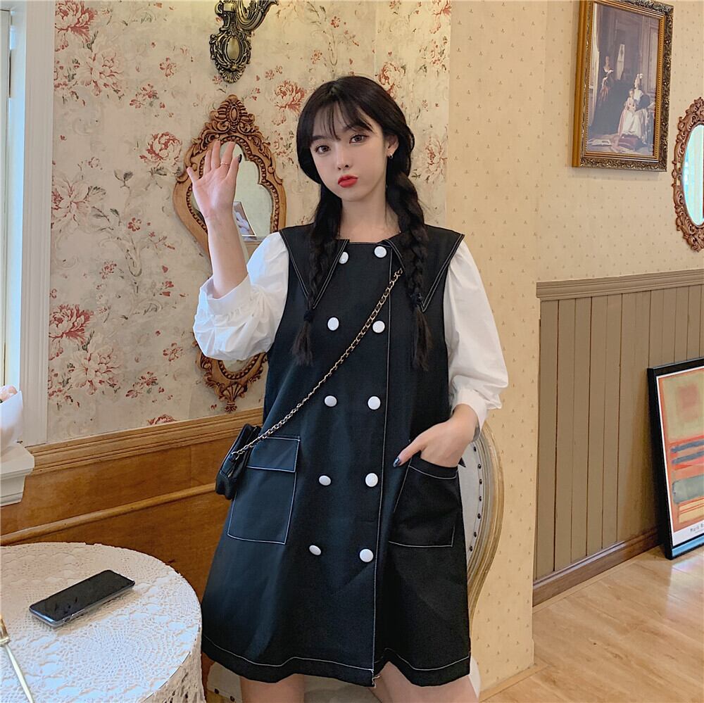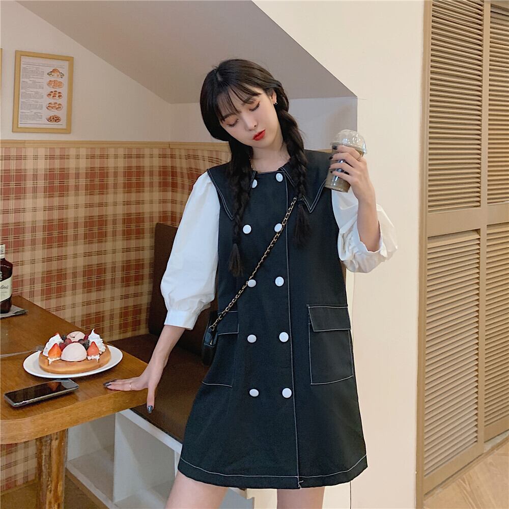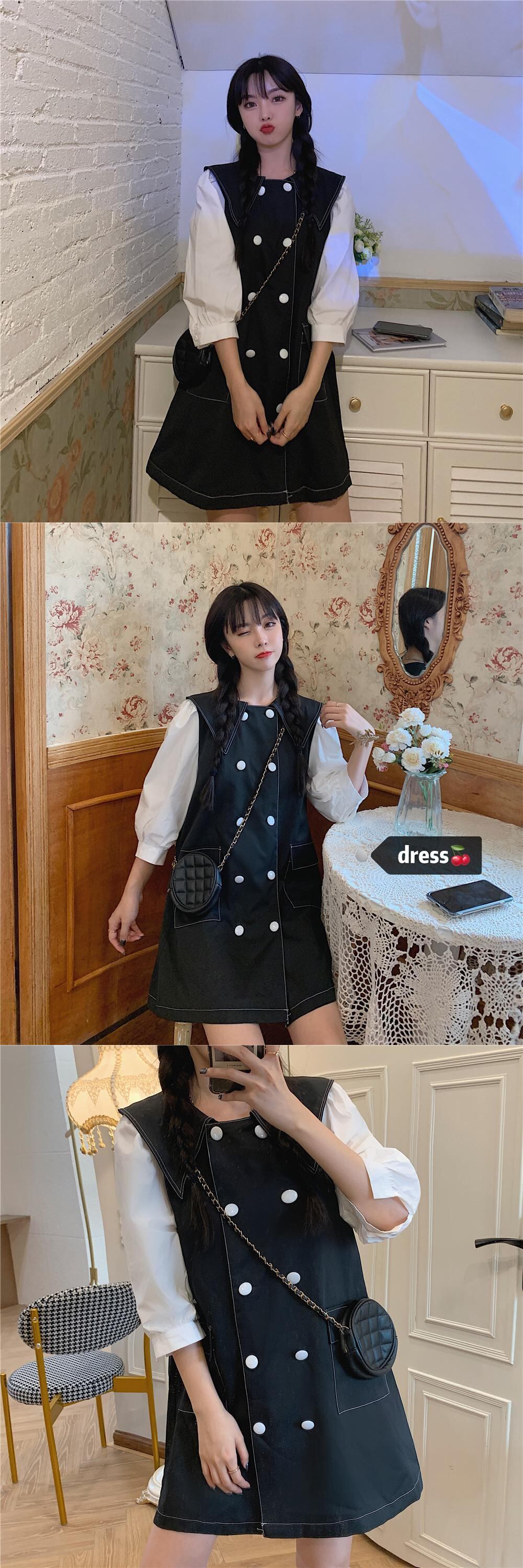✞ ノースリーブダブルブレストチュニック ワンピースドレスOP スカート スウィート ステッチ ✞ゴスロリ SM ミリ 甘ロリ クラロリ 和ロリ エレガント 黒ロリ 姫ロリ 華ロリ BB-BB95447112404