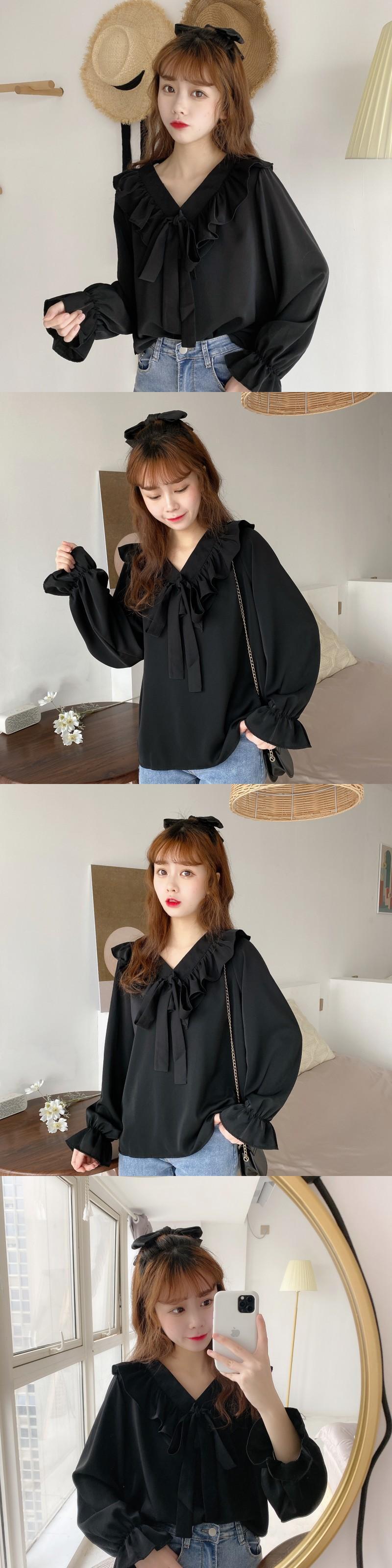 ✞ オータムVネックシャツブラウスリボンスリーブ大人女子☆ スウィート 秋物 ✞ゴスロリ SM ミリ 甘ロリ クラロリ 和ロリ エレガント 黒ロリ 姫ロリ 華ロリ BB-BB98961313417