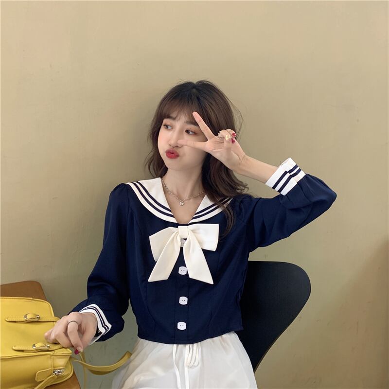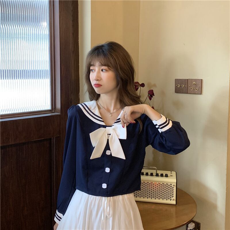 ✞ シャツブラウスネイビーショート長袖スリーブ白トップス ロング ホワイト ✞ゴスロリ SM ミリ 甘ロリ クラロリ 和ロリ エレガント 黒ロリ 姫ロリ 華ロリ BB-BB38248929378
