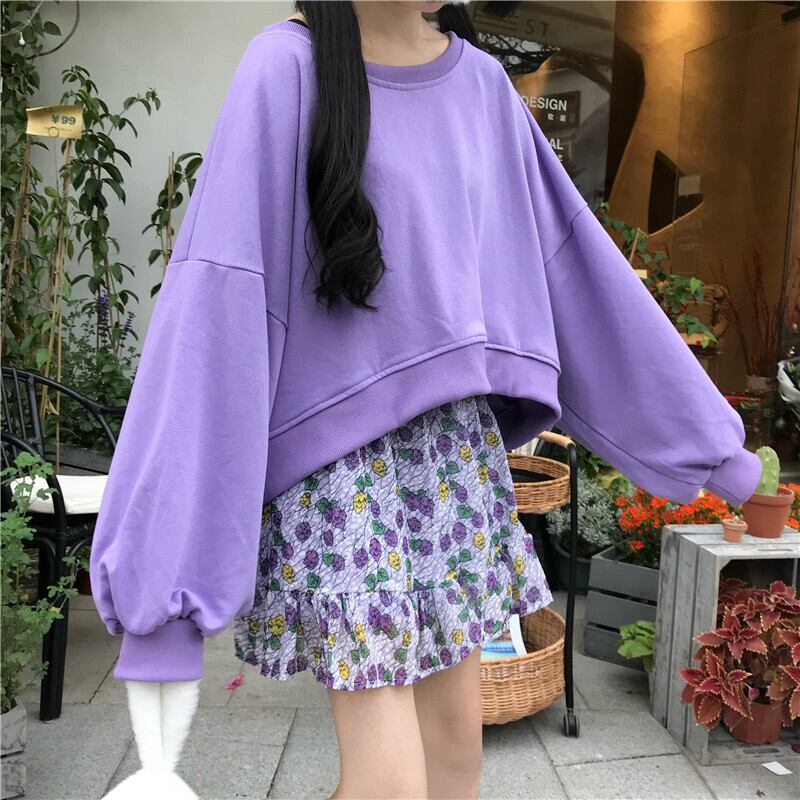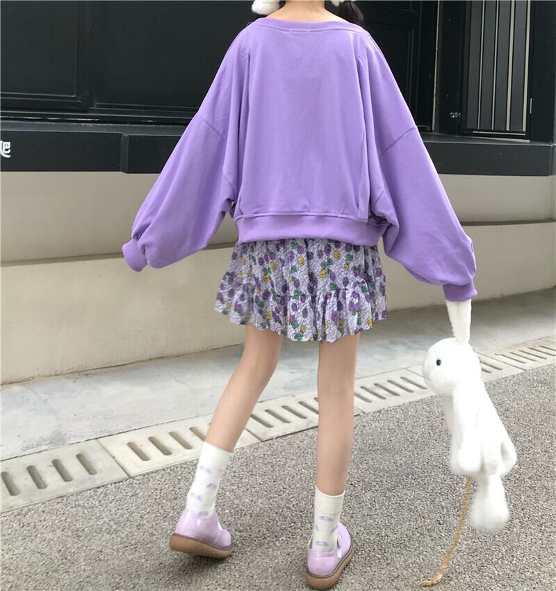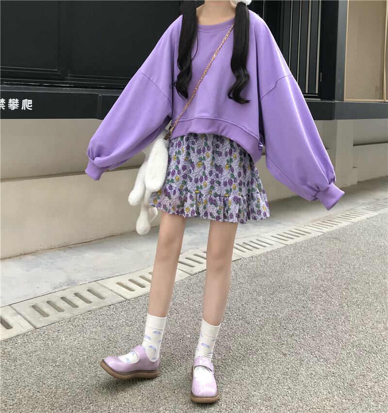 色:パープルセーターシングル,パープルフローラルハーフスカートワンピース