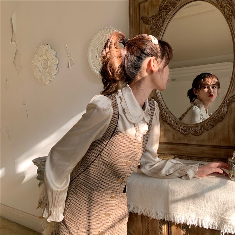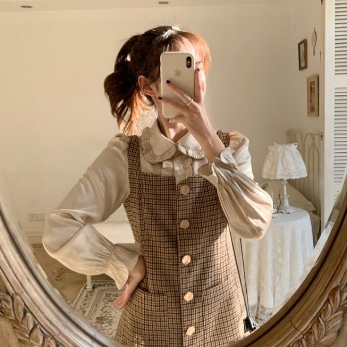 ✞ チェック柄ボタンチュニック ロング スウィート ✞ゴスロリ SM ミリ 甘ロリ クラロリ 和ロリ エレガント 黒ロリ 姫ロリ 華ロリ BB-BB47046268464