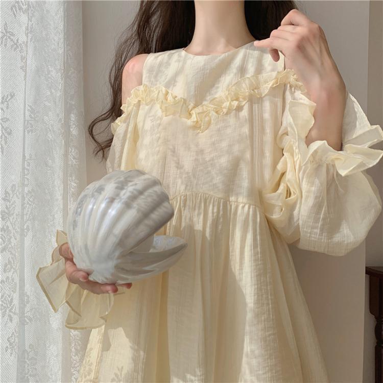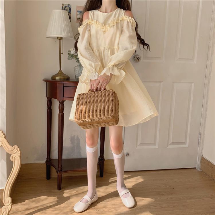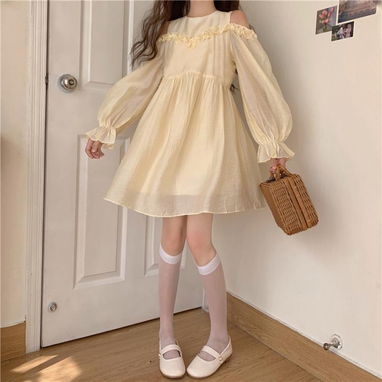 ✞ 肩だしシフォンストラップレス❤ランタンスリーブチュールワンピースドレスOP スウィート ステッチ ✞ゴスロリ SM ミリ 甘ロリ クラロリ 和ロリ エレガント 黒ロリ 姫ロリ 華ロリ BB-BB41295293911