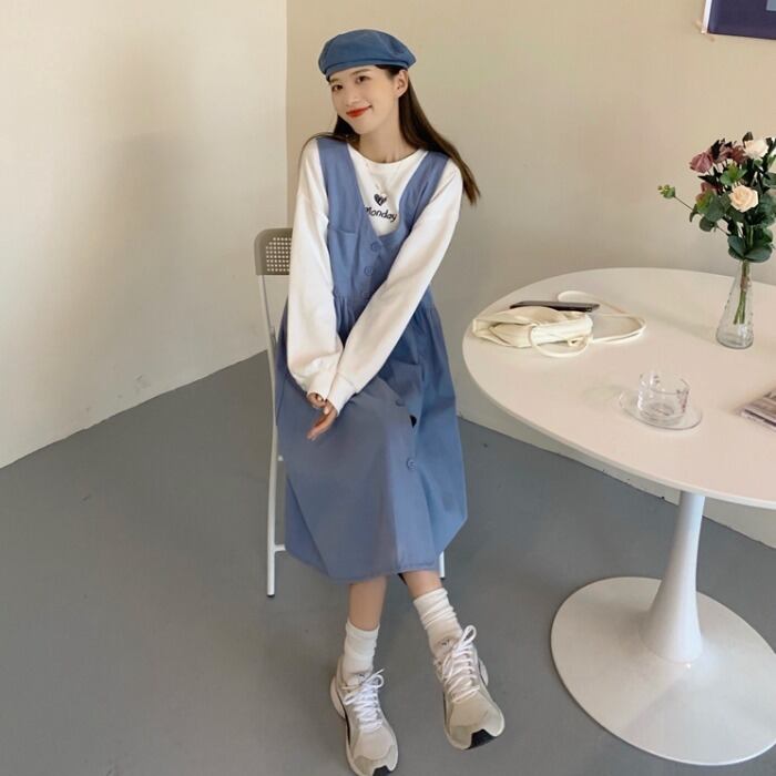 種類 サイズ:ワンサイズ, 色:アプリコットワンピース サイズ:ワンサイズ, 色:ピンクワンピース サイズ:ワンサイズ, 色:ブルーワンピース サイズ:ワンサイズ, 色:ブラックワンピース サイズ:ワンサイズ, 色:ラウンドネックシャツシングル サイズ:ワンサイズ, 色:白文字セーターワンピース サイズ:ワンサイズ, 色:刺繍入りシャツシングル