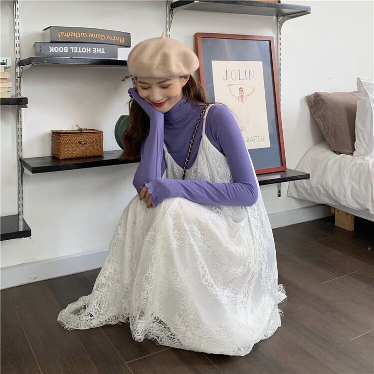 色:パープルプライマーシングルピース,ホワイトサスペンダースカートシングル