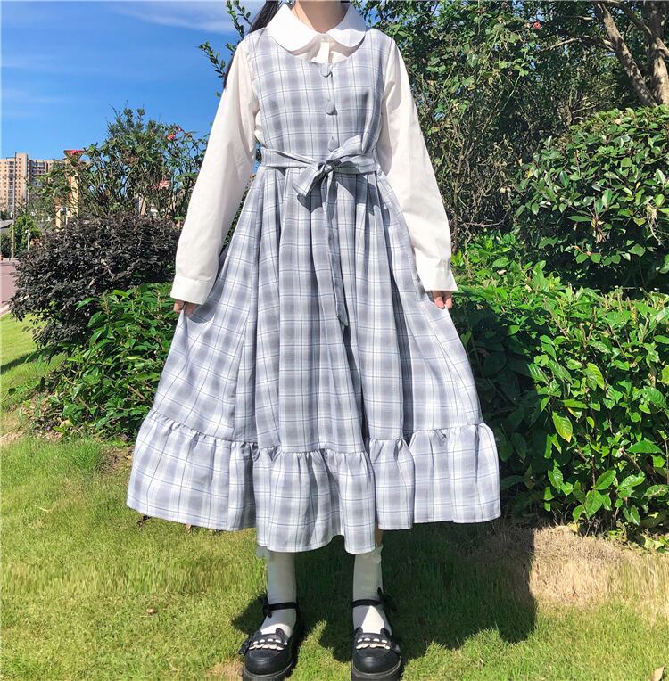 ✞ スカート ♡ラウンドネックノースリーブストラップ ♥カワイイ♥チェック柄 ✞ゴスロリ SM ミリ 甘ロリ クラロリ 和ロリ エレガント 黒ロリ 姫ロリ 華ロリ BB-BB81042939249
