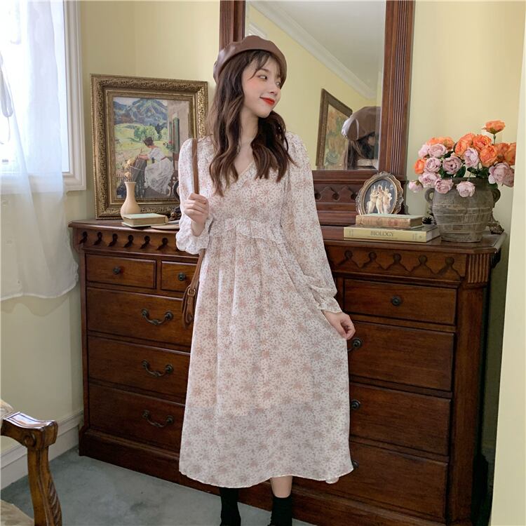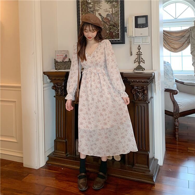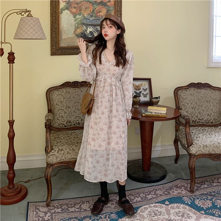✞ スタンダード花柄Vネックシフォン♥カワイイ♥スカート ロング レトロ スウィート ✞ゴスロリ SM ミリ 甘ロリ クラロリ 和ロリ エレガント 黒ロリ 姫ロリ 華ロリ BB-BB19894111057