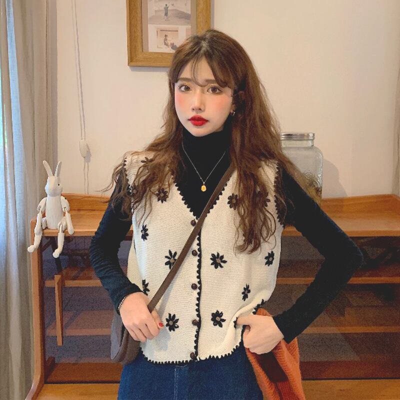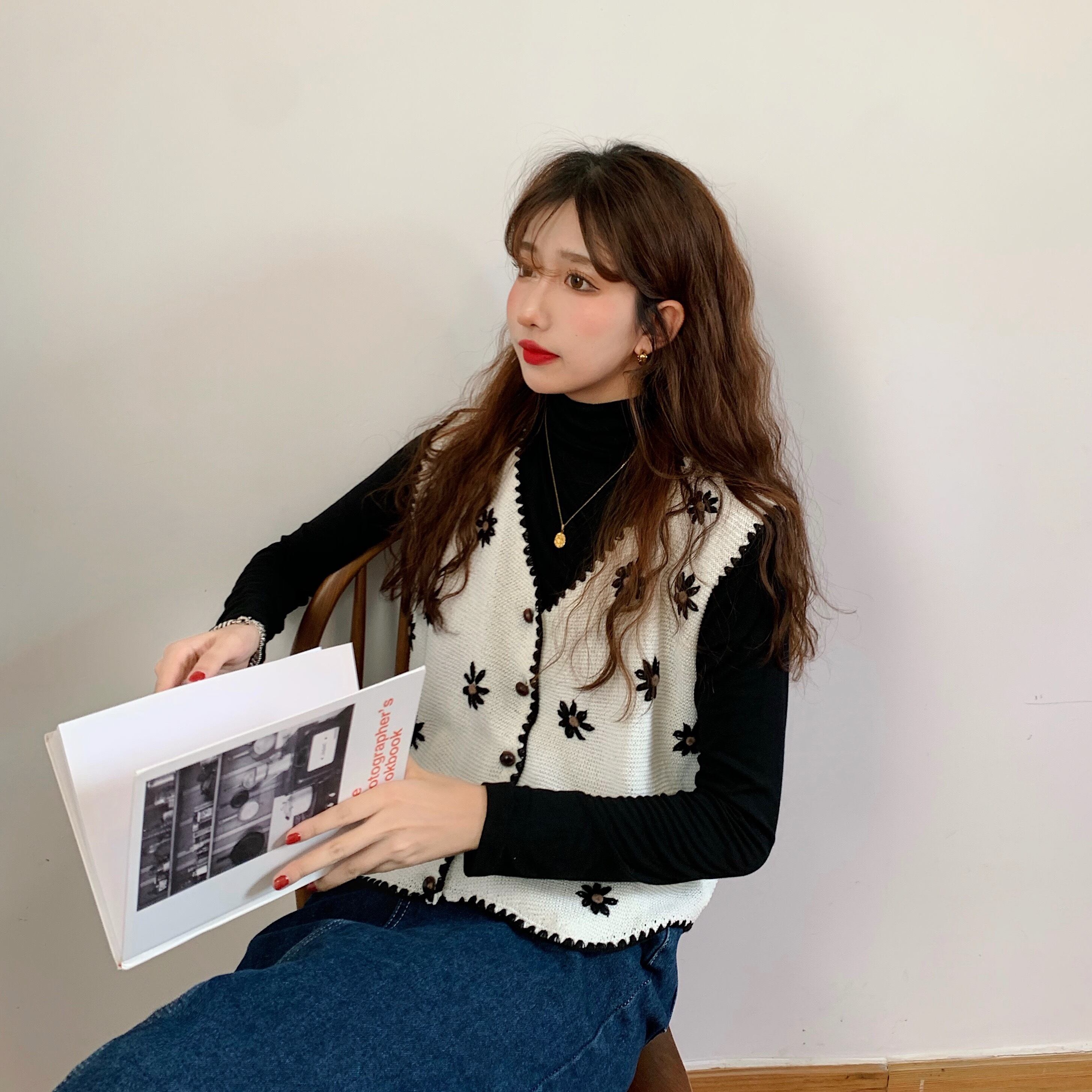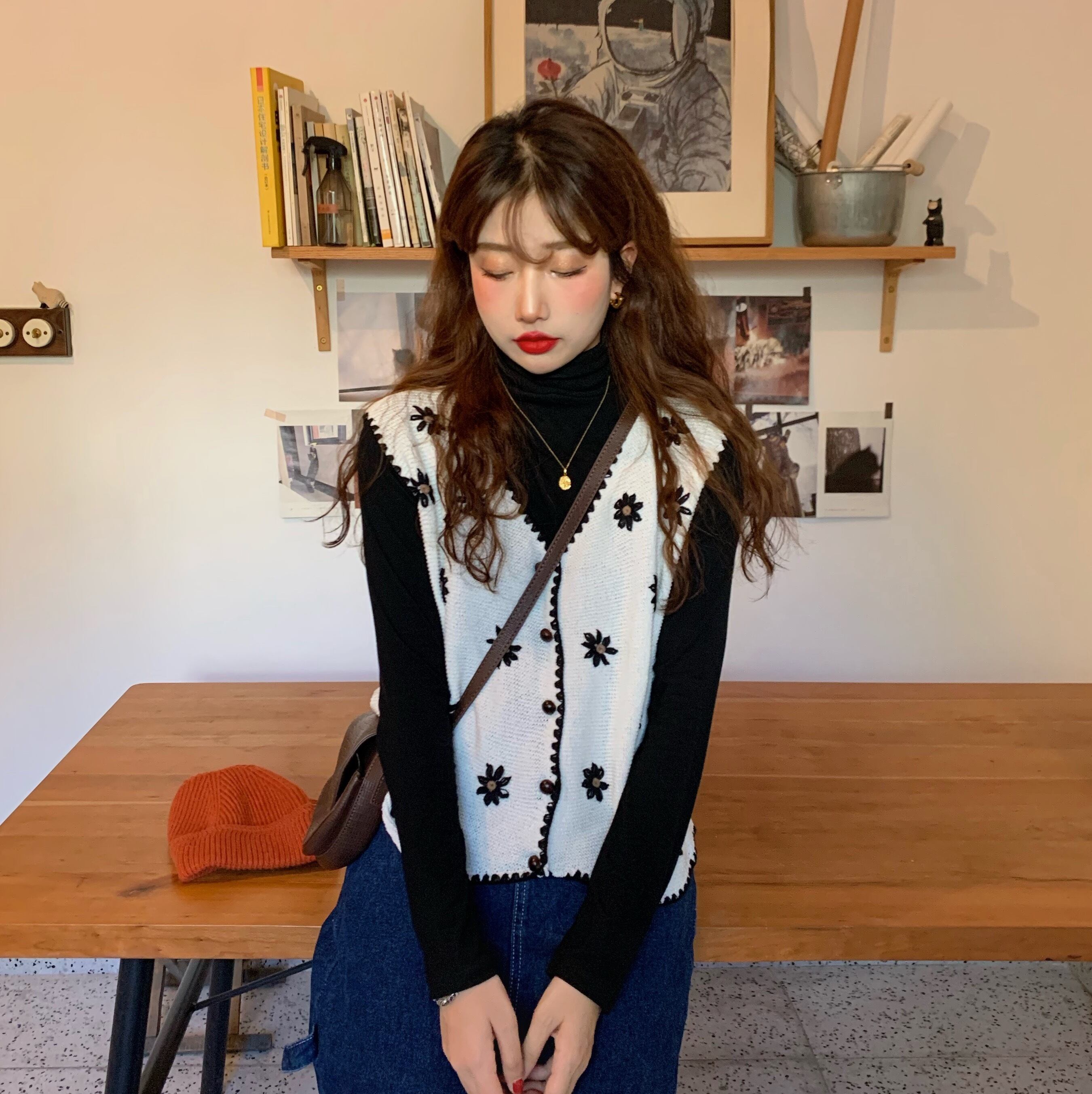 ✞ スタンダードVネック花柄刺繍セーター レトロ フラワーデザイン ✞ゴスロリ SM ミリ 甘ロリ クラロリ 和ロリ エレガント 黒ロリ 姫ロリ 華ロリ BB-BB31939830783