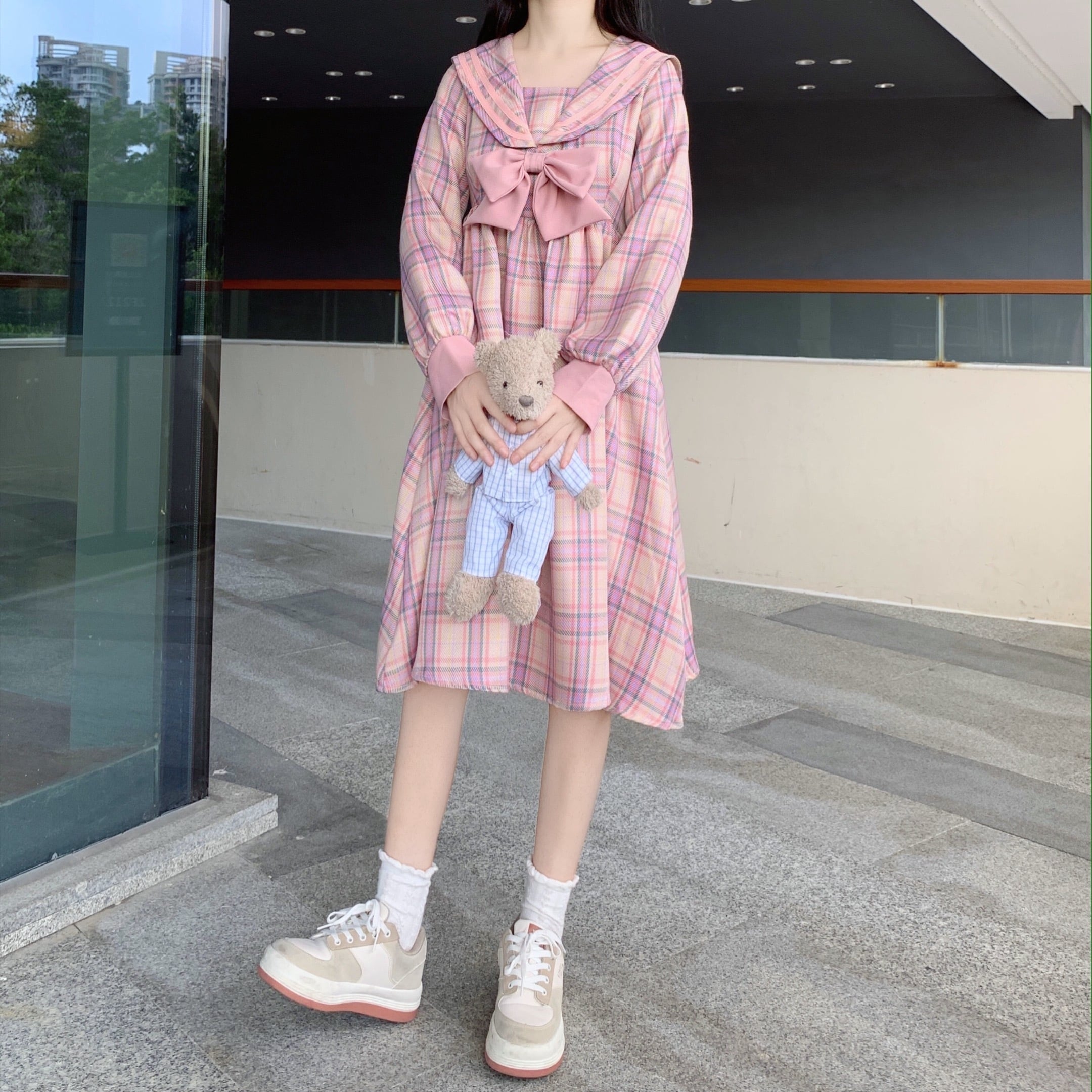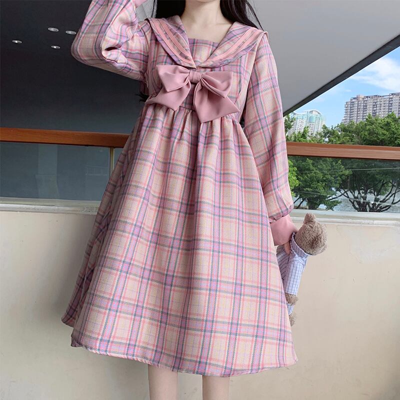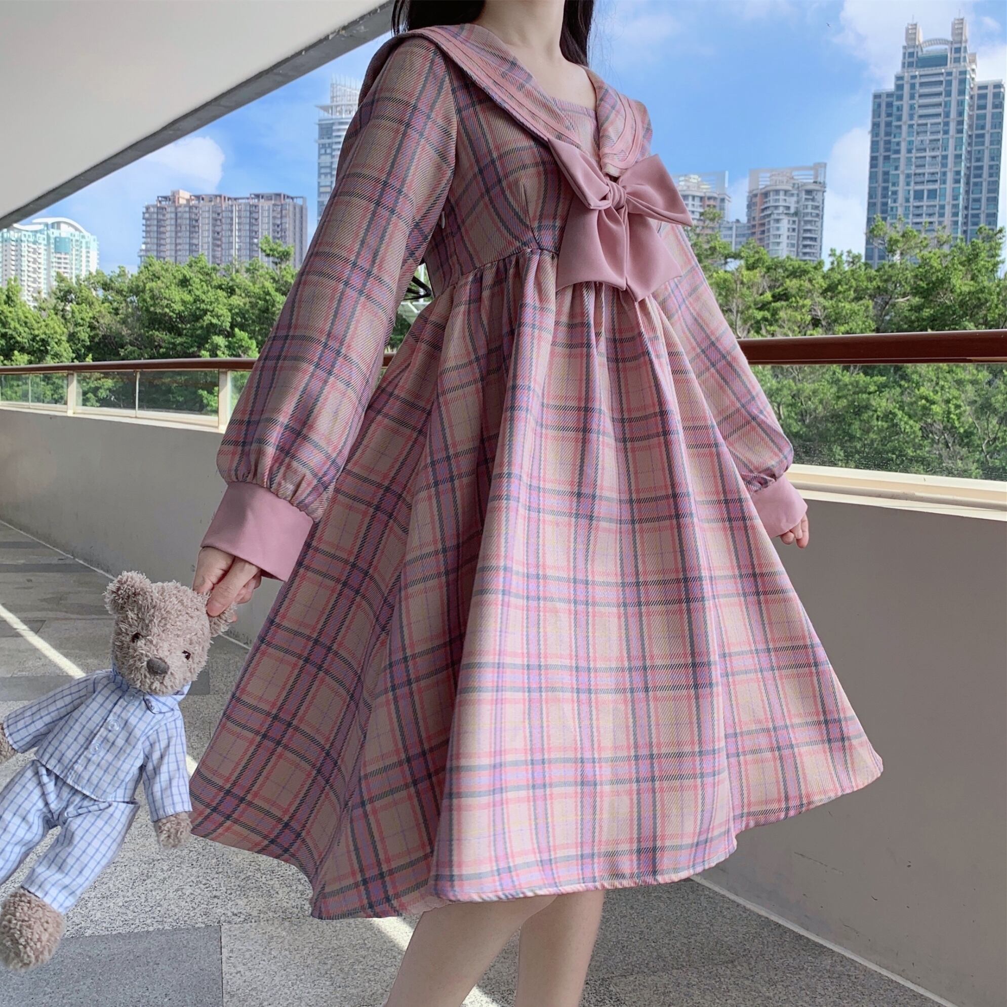 ✞ スカート ネイビーリボンチェック柄 ロング スウィート ステッチ ✞ゴスロリ SM ミリ 甘ロリ クラロリ 和ロリ エレガント 黒ロリ 姫ロリ 華ロリ BB-BB92621278048