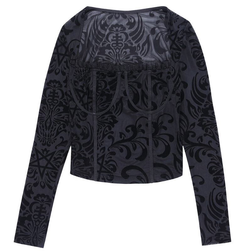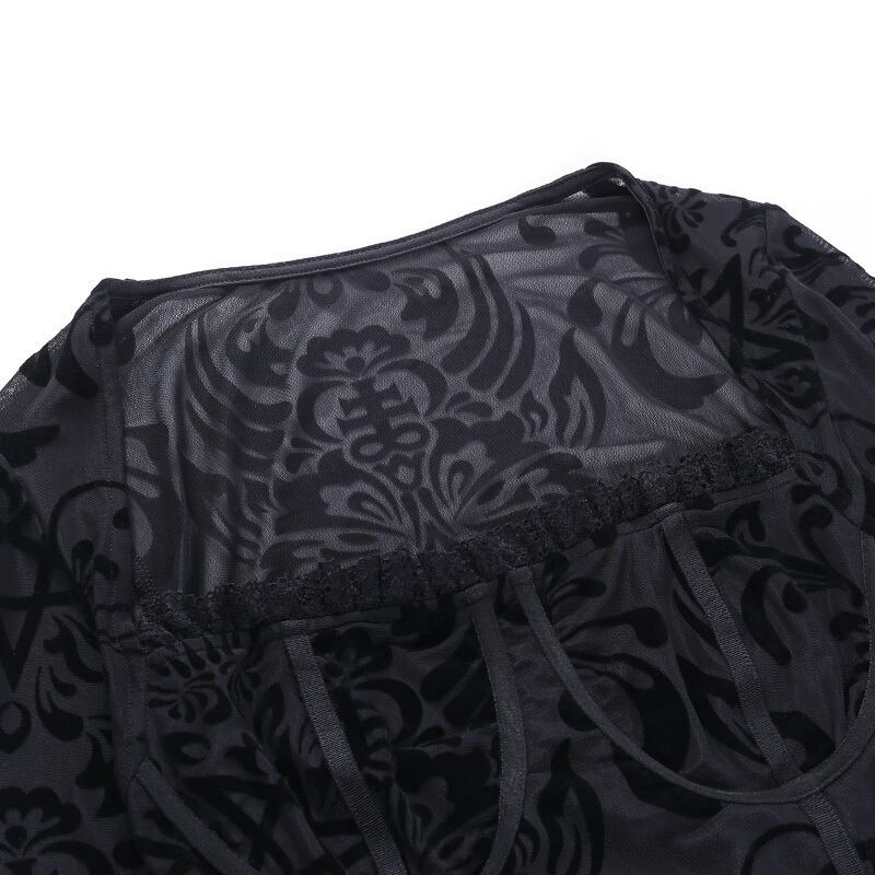 ✞✝✞ ダークブラックメッシュレースシャツブラウス大人女子☆ウィンター♡スリムプリントTシャツ 冬物 スクウェア ✞✝✞ ゴスロリ SM ミリ 甘ロリ クラロリ 和ロリ エレガント 黒ロリ 姫ロリ 華ロリ AA-AA44333708949