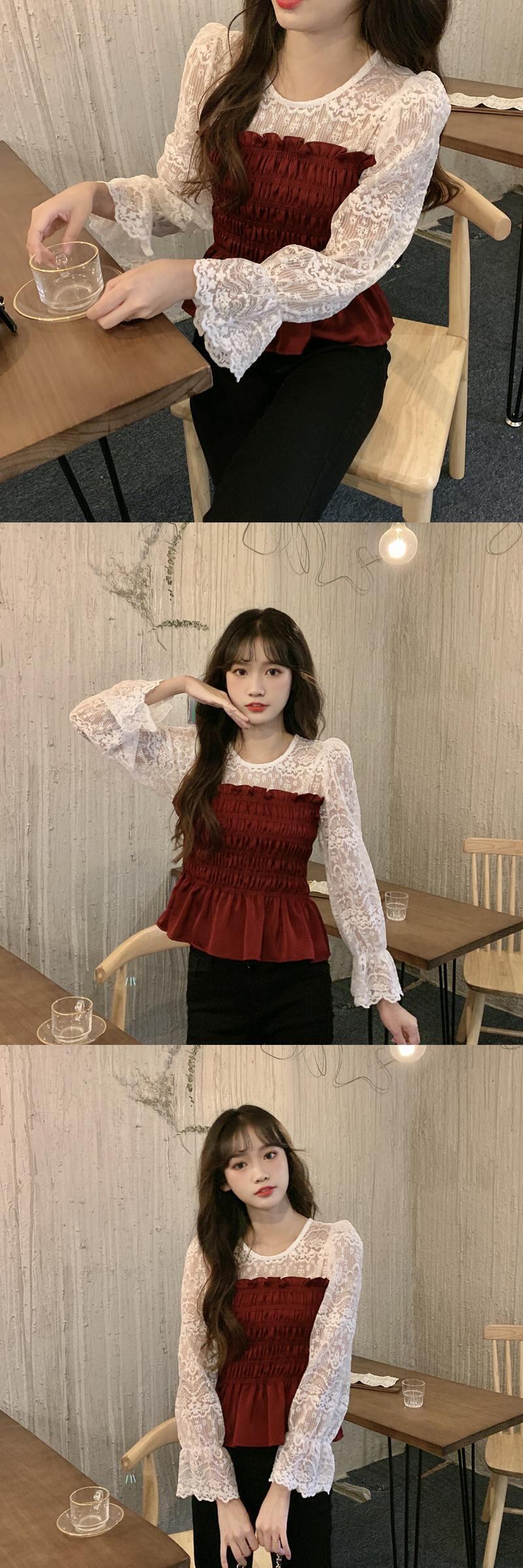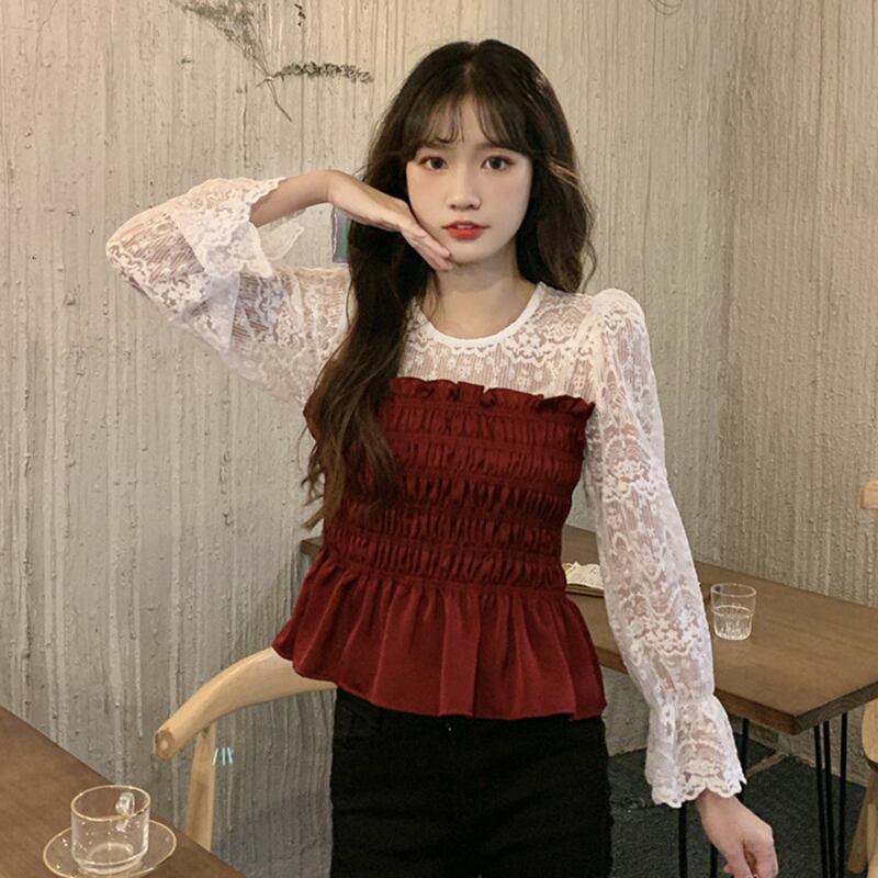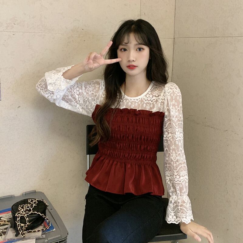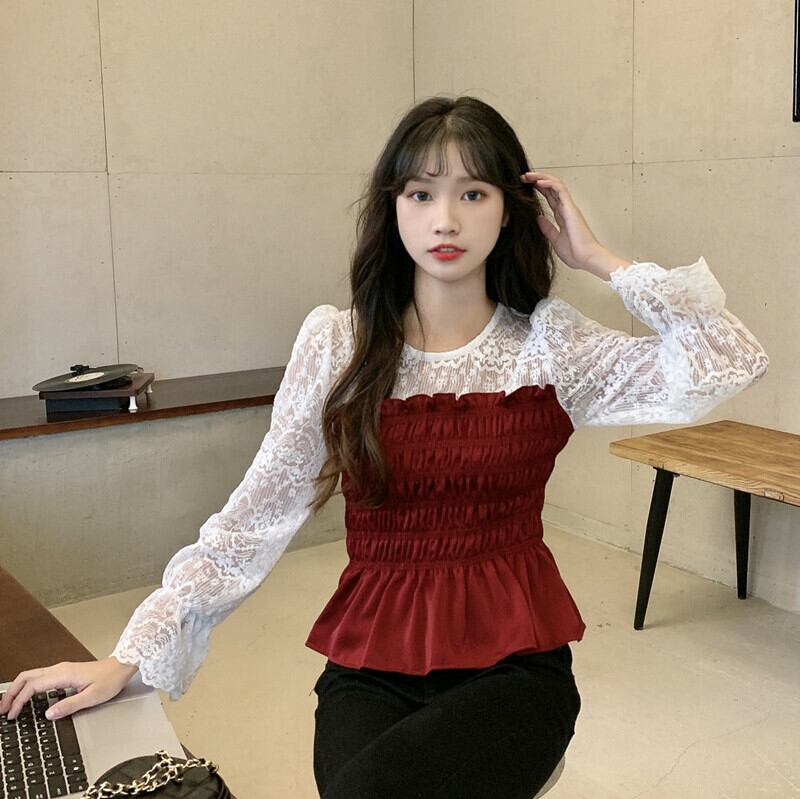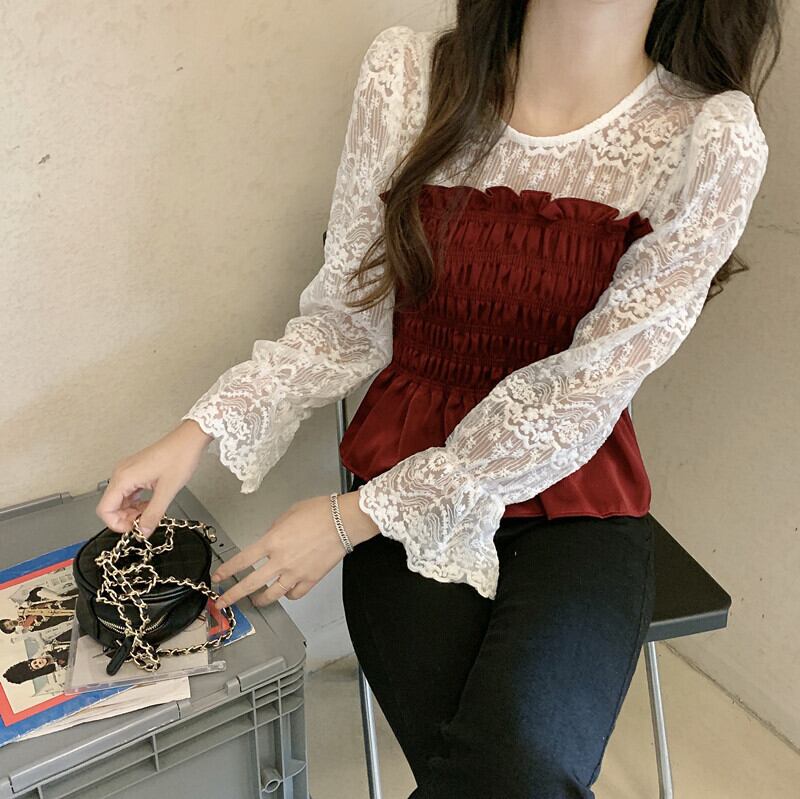 ✞ オータム♡レースシャツブラウススリム♥カワイイ♥ブラウス 大人女子☆ ロング スウィート 秋物 ステッチ ✞ゴスロリ SM ミリ 甘ロリ クラロリ 和ロリ エレガント 黒ロリ 姫ロリ 華ロリ BB-BB7788585266