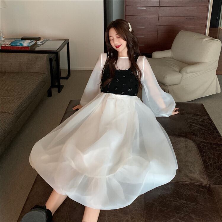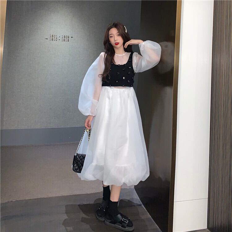✞ ラウンドネックスリーブメッシュ花柄キャミソールスカート ランタンスリーブ フラワーデザイン ✞ゴスロリ SM ミリ 甘ロリ クラロリ 和ロリ エレガント 黒ロリ 姫ロリ 華ロリ BB-BB64213522686