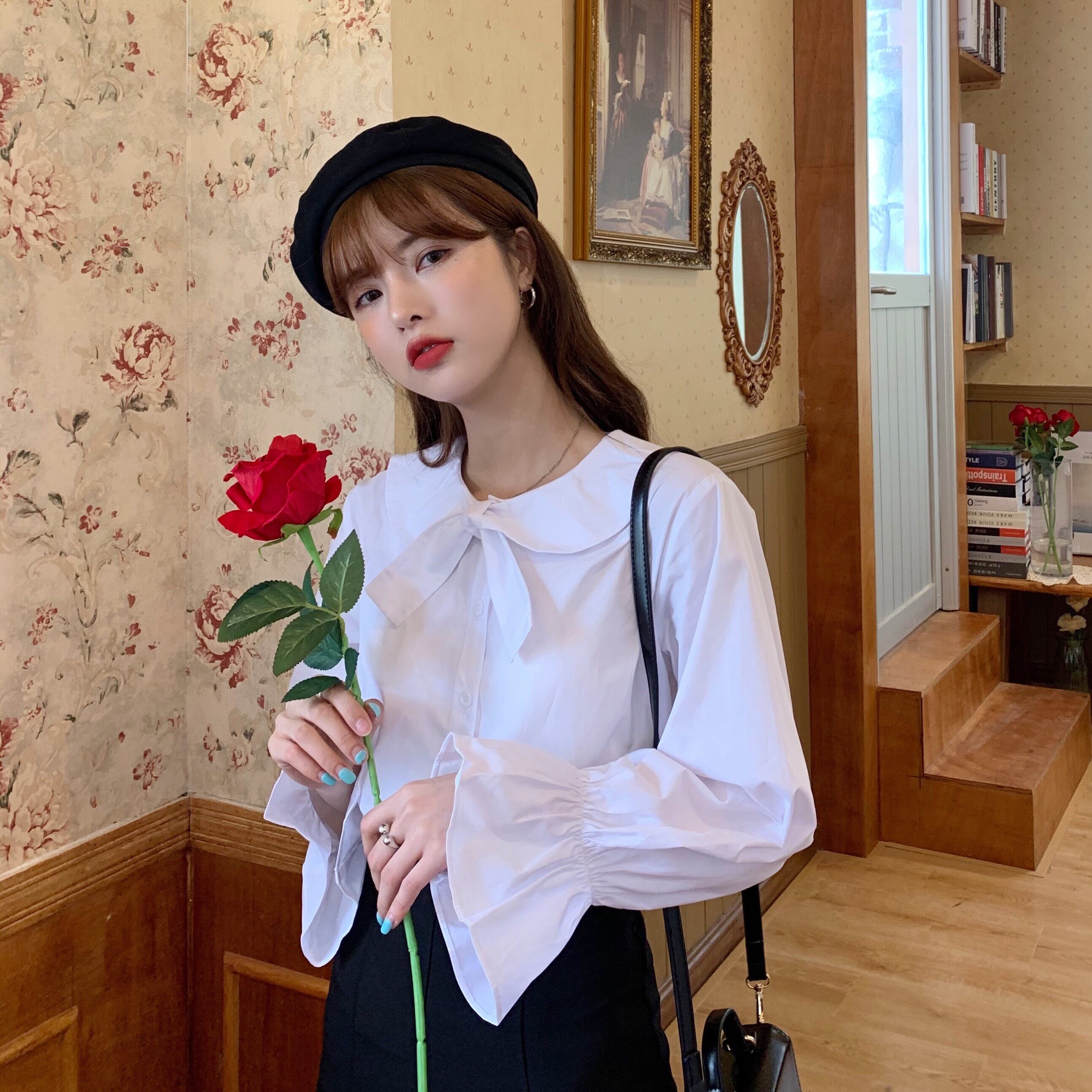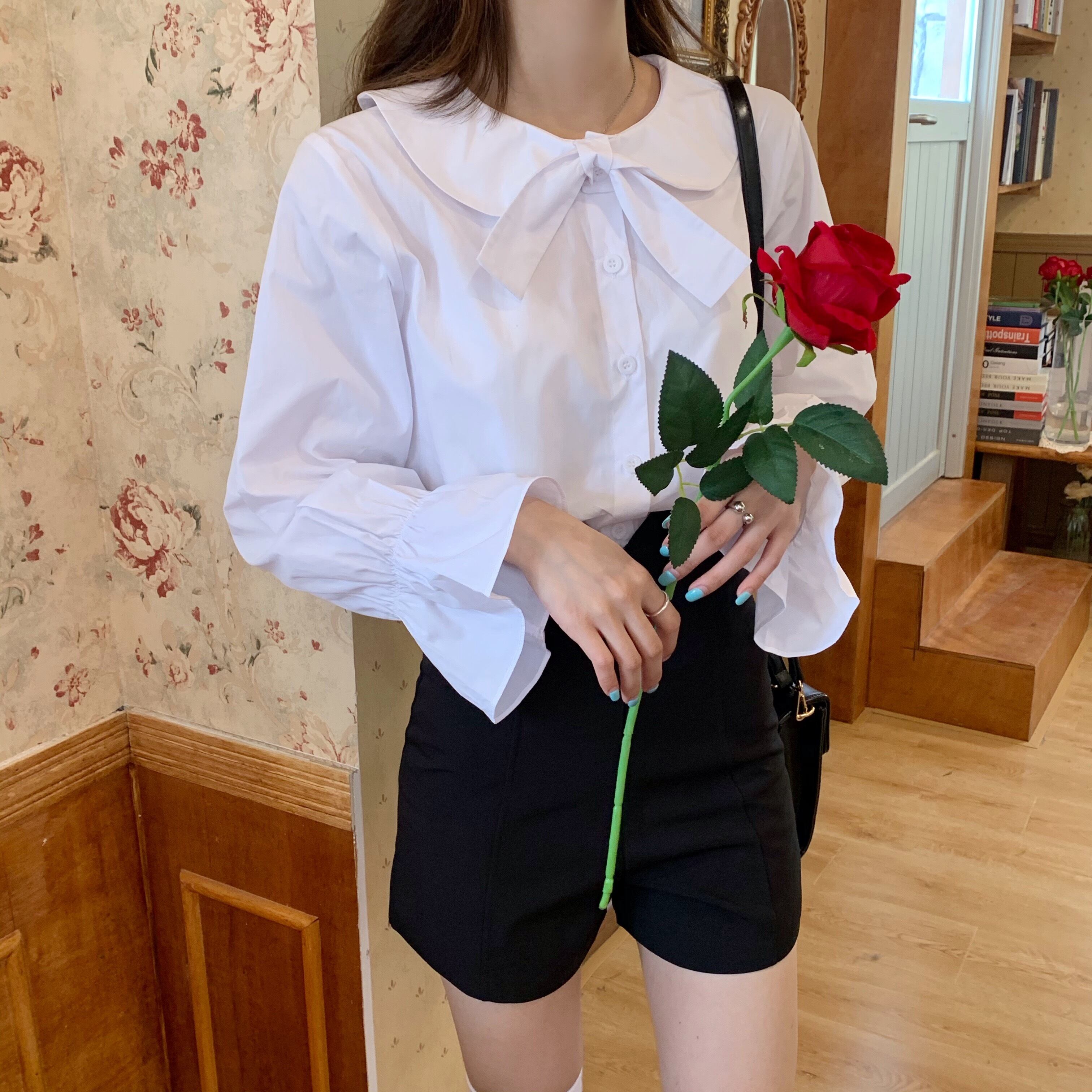 ✞ リボンスリーブ白シャツブラウス ホワイト スウィート ✞ゴスロリ SM ミリ 甘ロリ クラロリ 和ロリ エレガント 黒ロリ 姫ロリ 華ロリ BB-BB57420960970