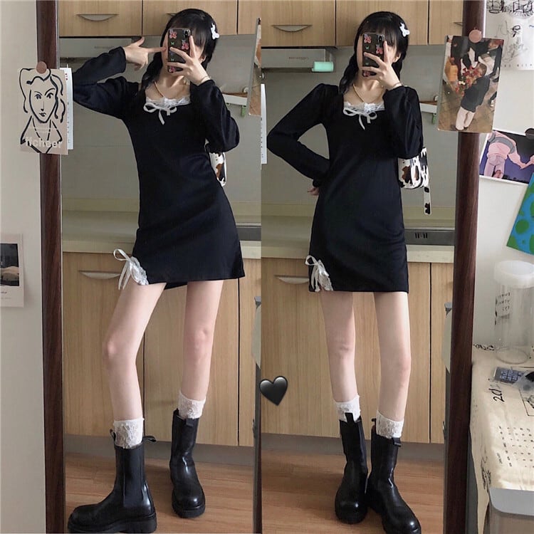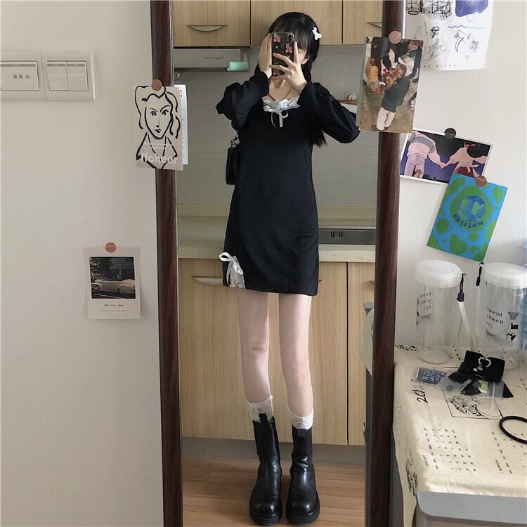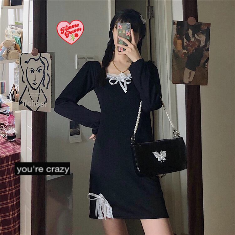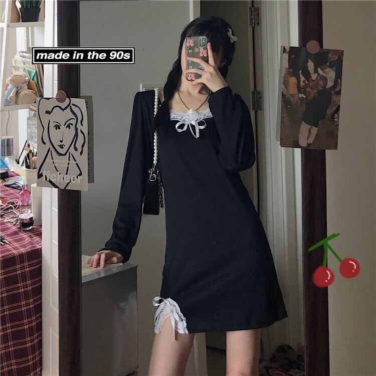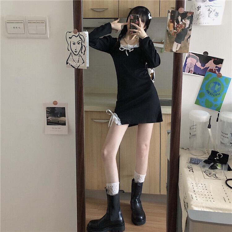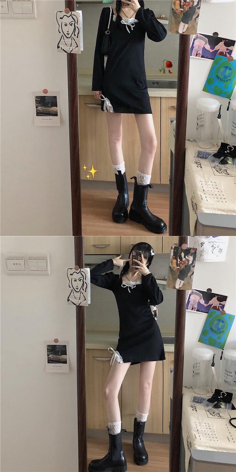 ✞ スタンダードレースリボンブラックスリムサイドスリット レトロ スウィート スクウェア ステッチ ✞ゴスロリ SM ミリ 甘ロリ クラロリ 和ロリ エレガント 黒ロリ 姫ロリ 華ロリ BB-BB73387242742