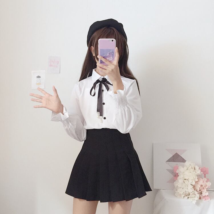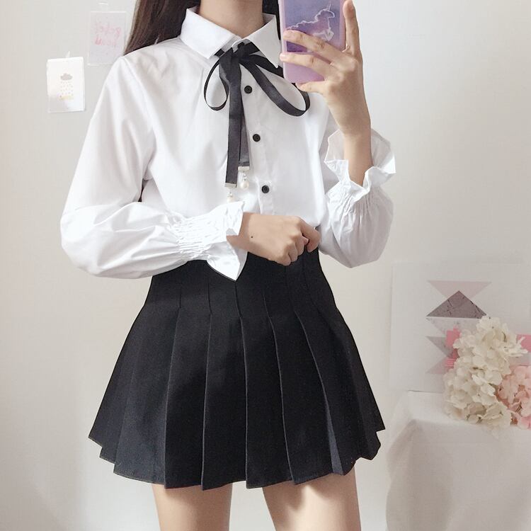 ✞ ベーシック白シャツブラウス♡スリーブ長袖 ロング ホワイト ランタンスリーブ スウィート ✞ゴスロリ SM ミリ 甘ロリ クラロリ 和ロリ エレガント 黒ロリ 姫ロリ 華ロリ BB-BB37852337938