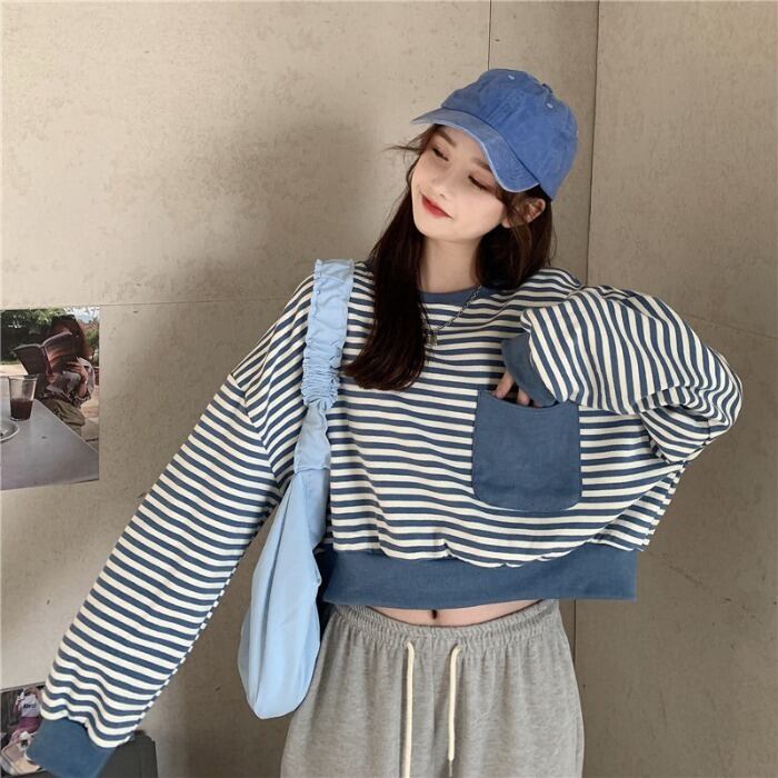✞ ラウンドネック♡ストライプセーター カジュアルシャツブラウス ロング ✞ゴスロリ SM ミリ 甘ロリ クラロリ 和ロリ エレガント 黒ロリ 姫ロリ 華ロリ BB-BB29373989268