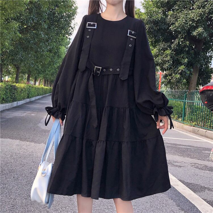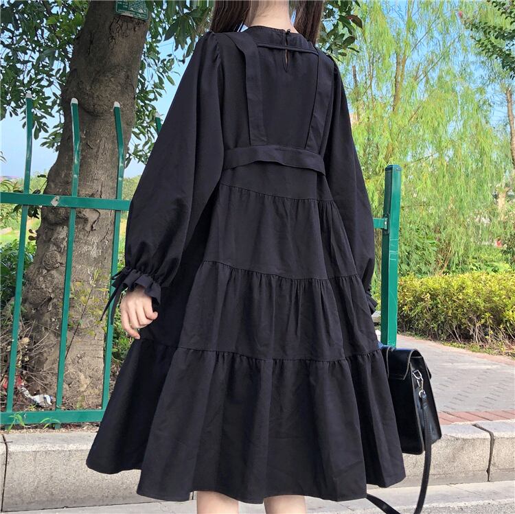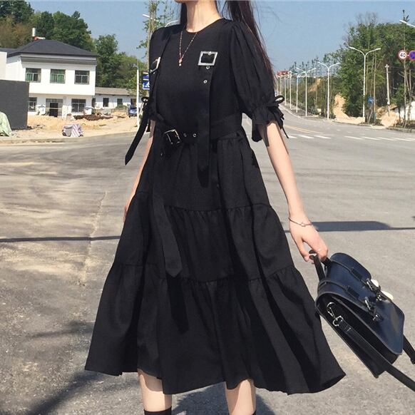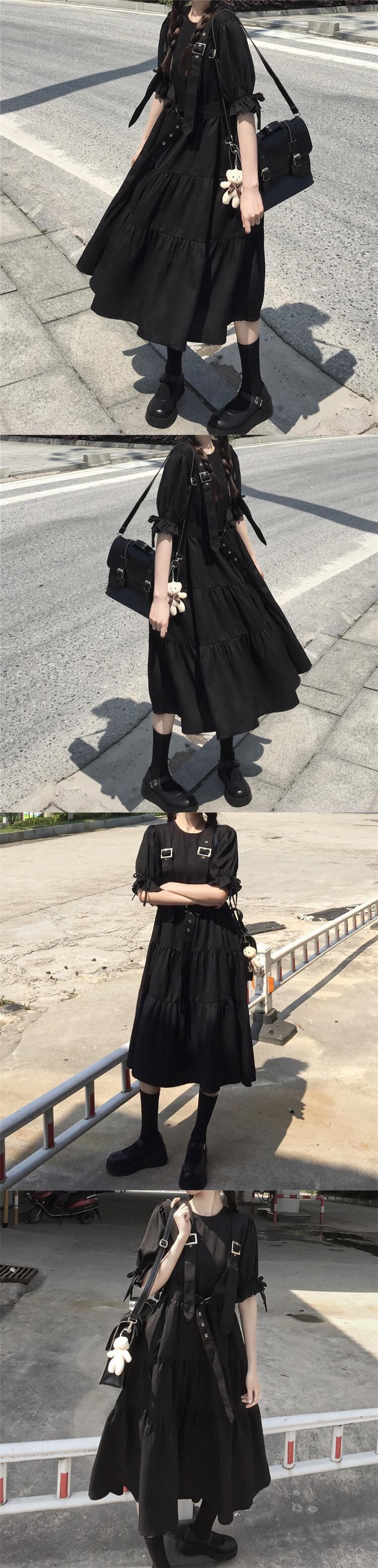 ✞ 黒ダークネス♡ブラックティアードベルトチュニック ワンピースドレスOP ショートスリーブ or ロングスリーブ♥カワイイ♥ レトロ スウィート ✞ゴスロリ SM ミリ 甘ロリ クラロリ 和ロリ エレガント 黒ロリ 姫ロリ 華ロリ BB-BB37361017452