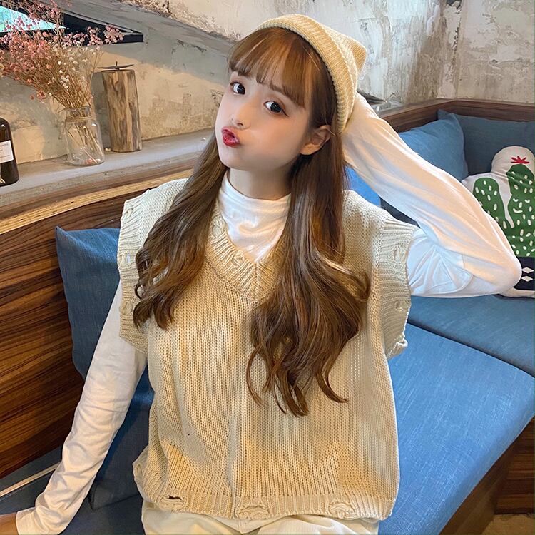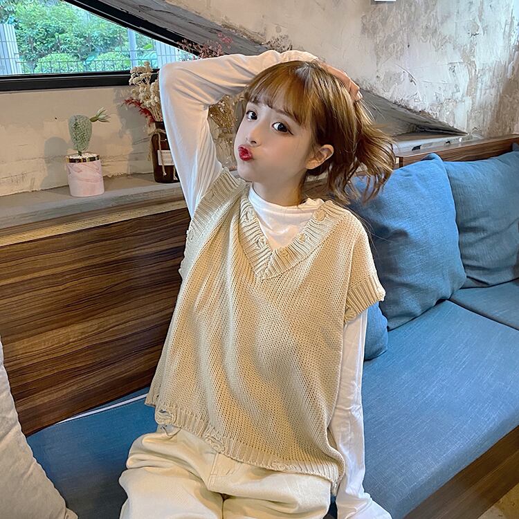 色:アプリコットホールベストシングル,ホワイトボトミングシャツ