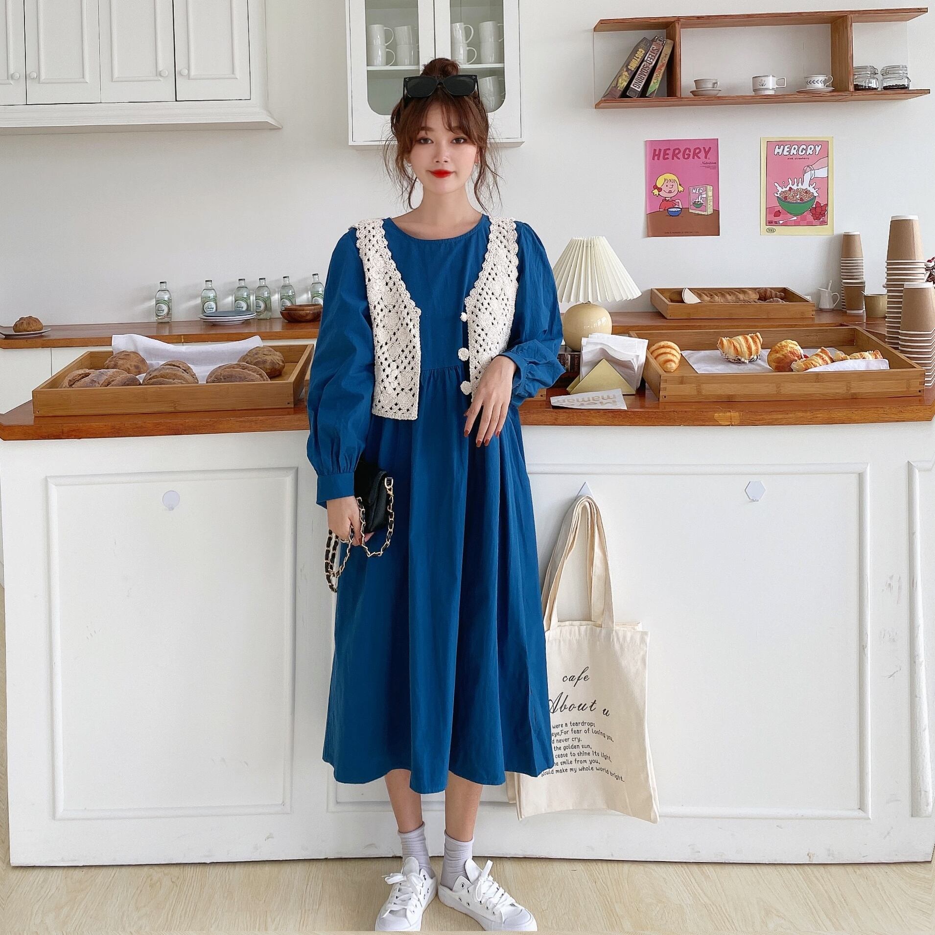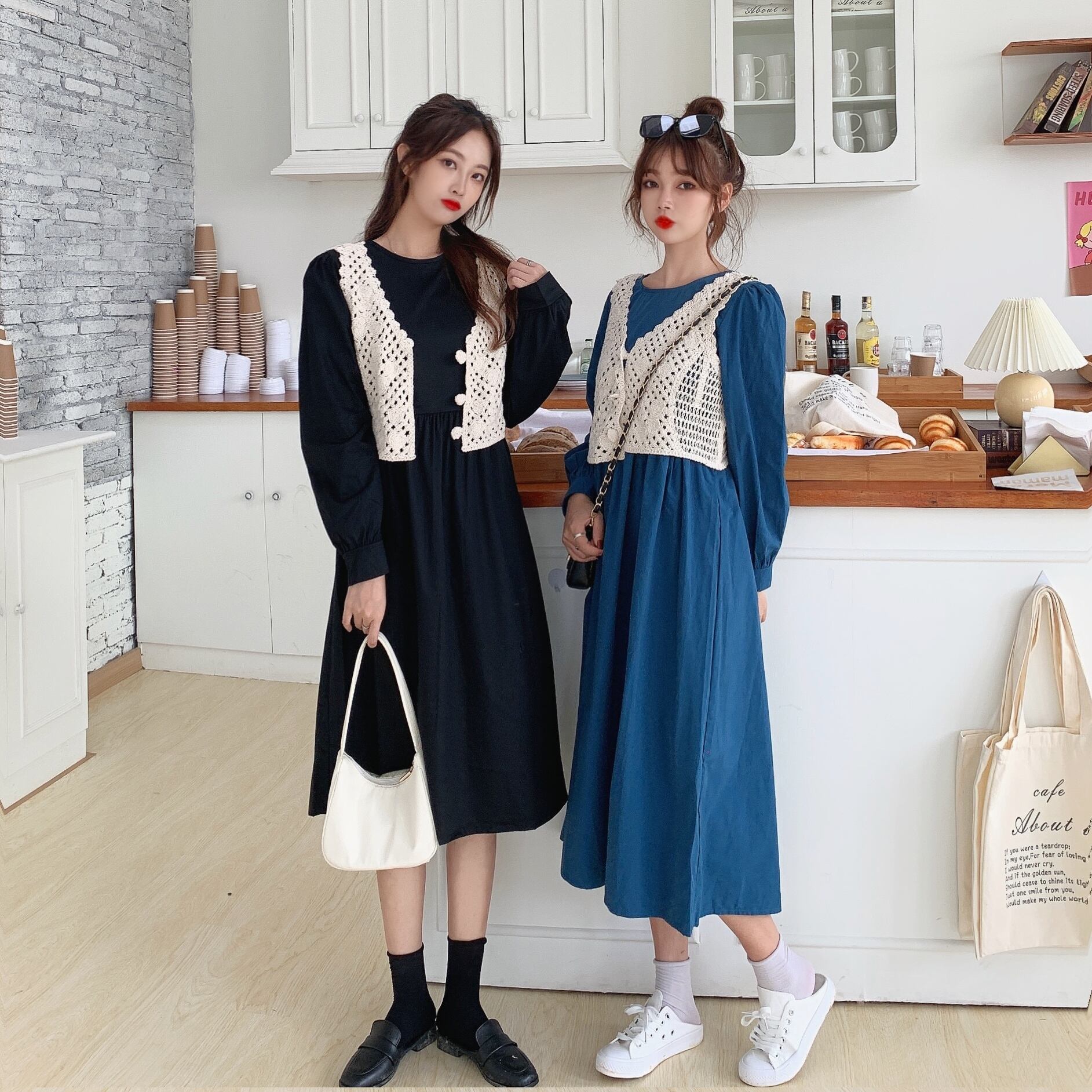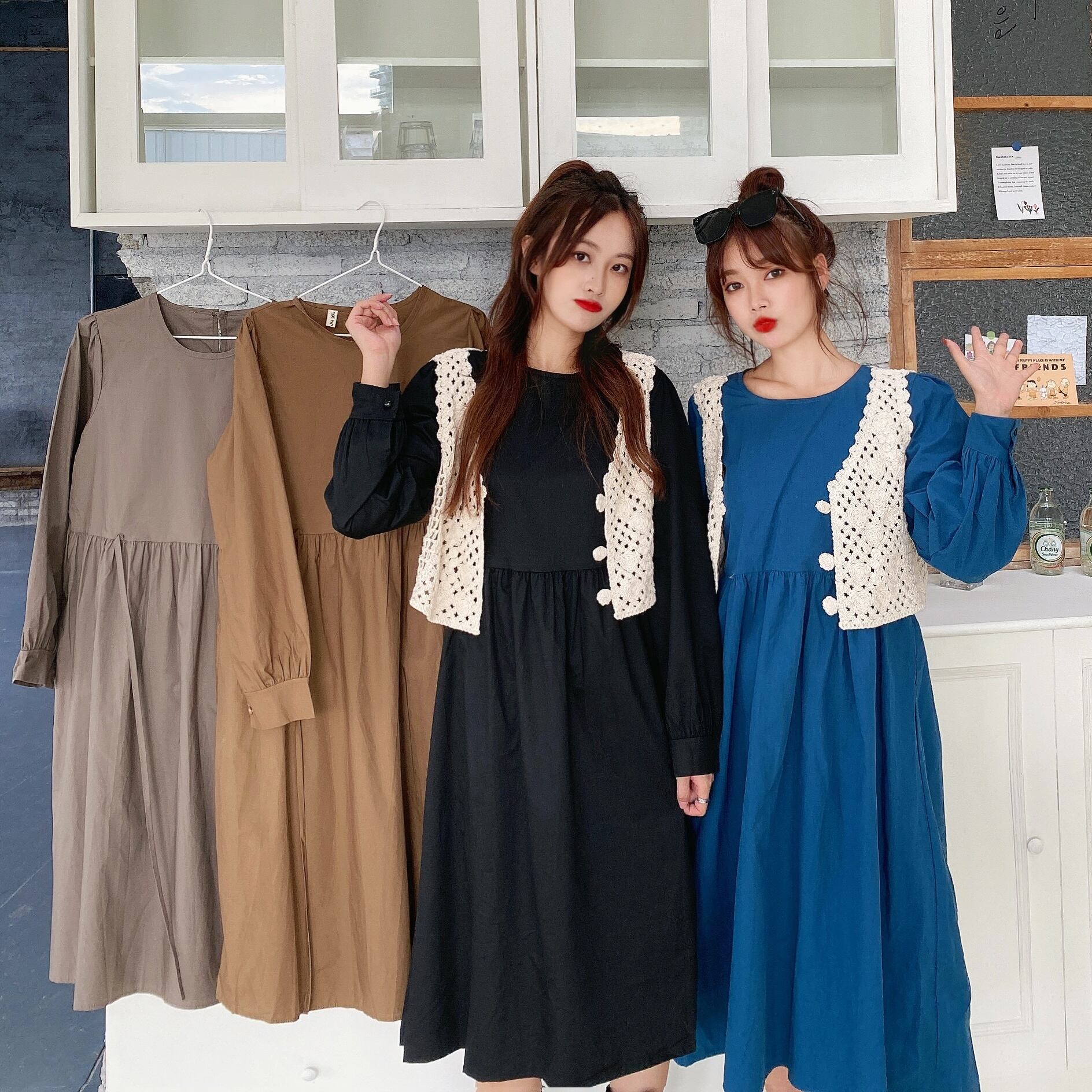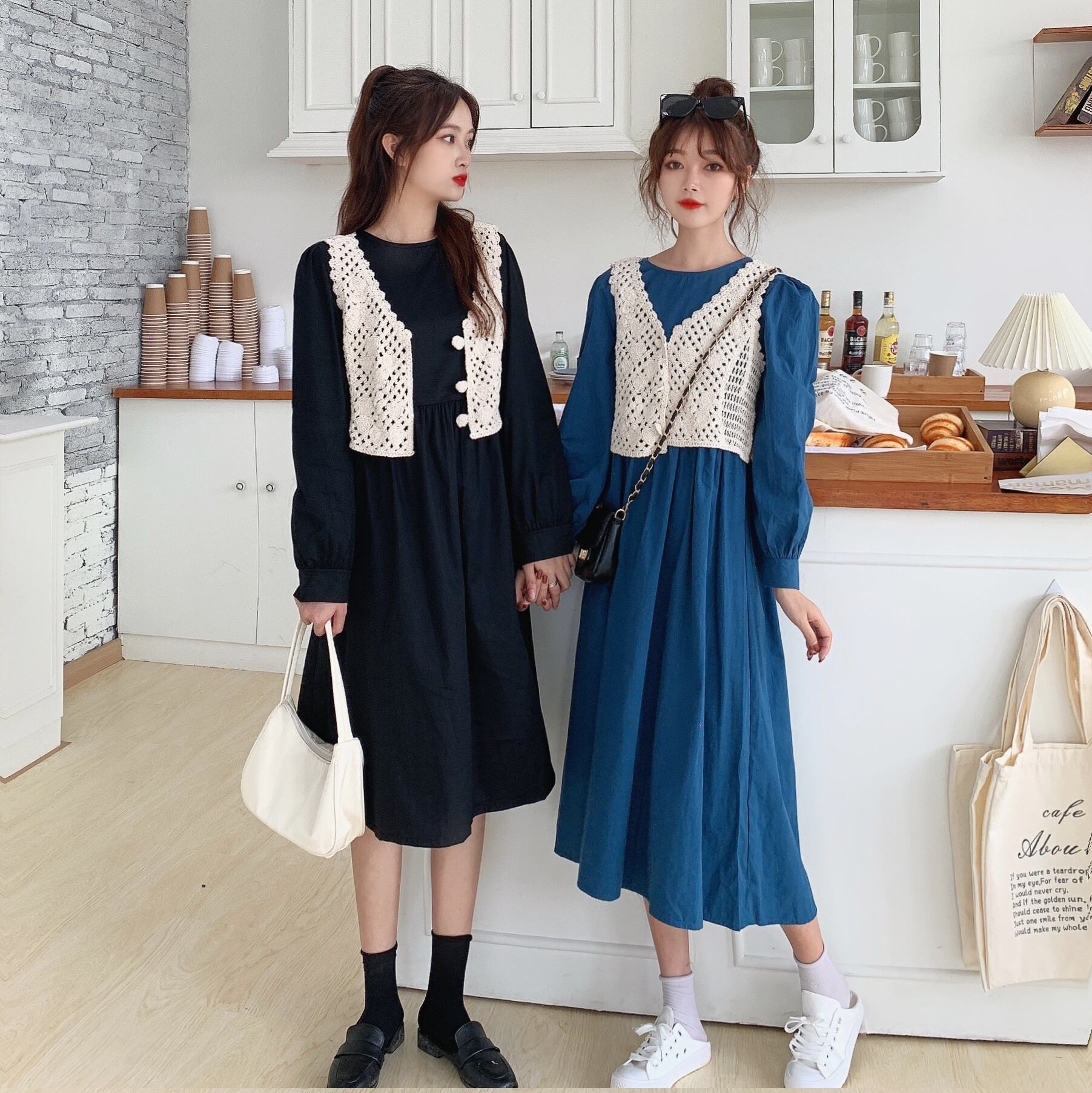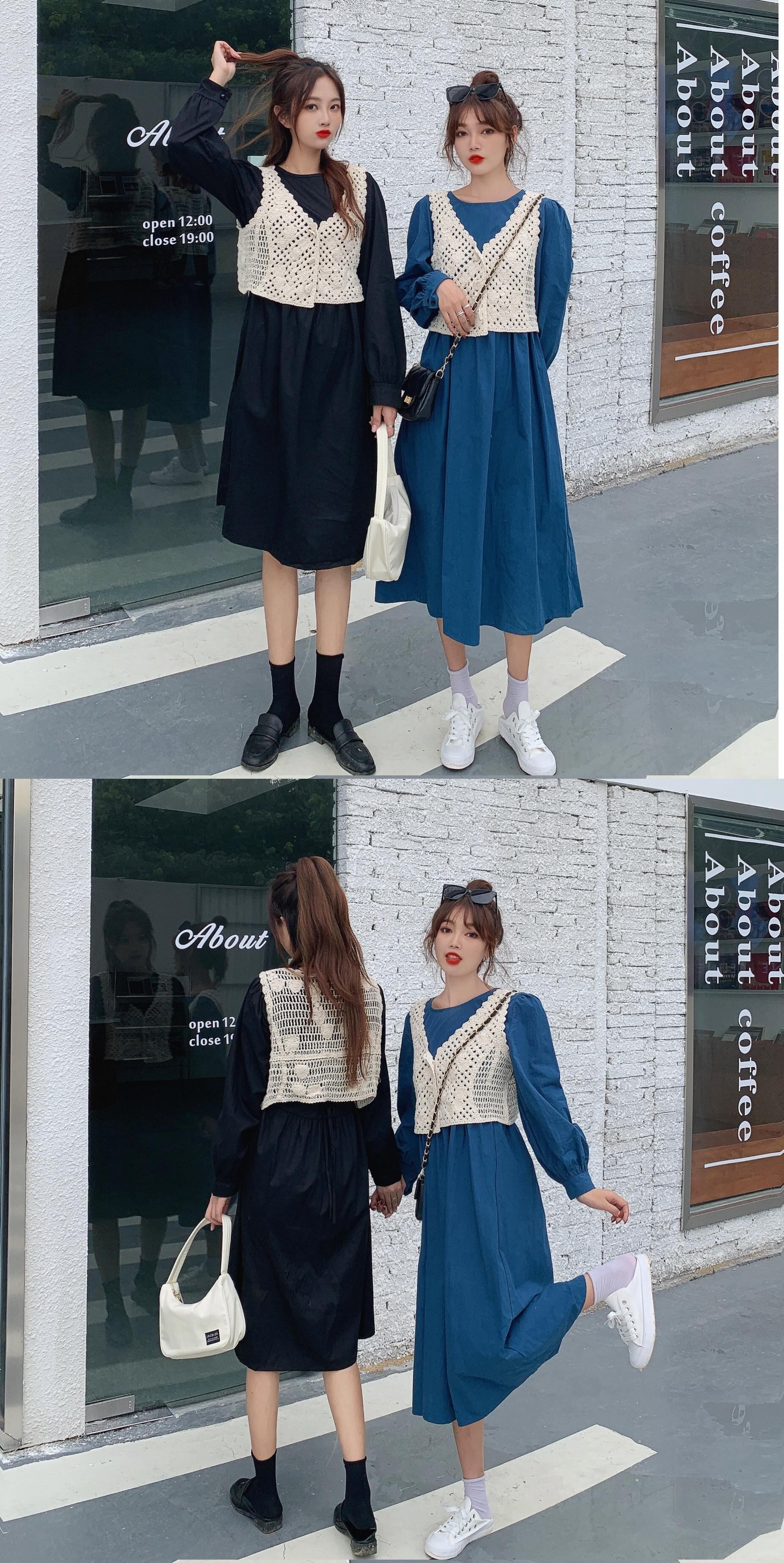 色:ブルースカート+アプリコットベスト,ブラック+アプリコットベスト,キャラメル+ベスト,プレミアムグレー+ベスト