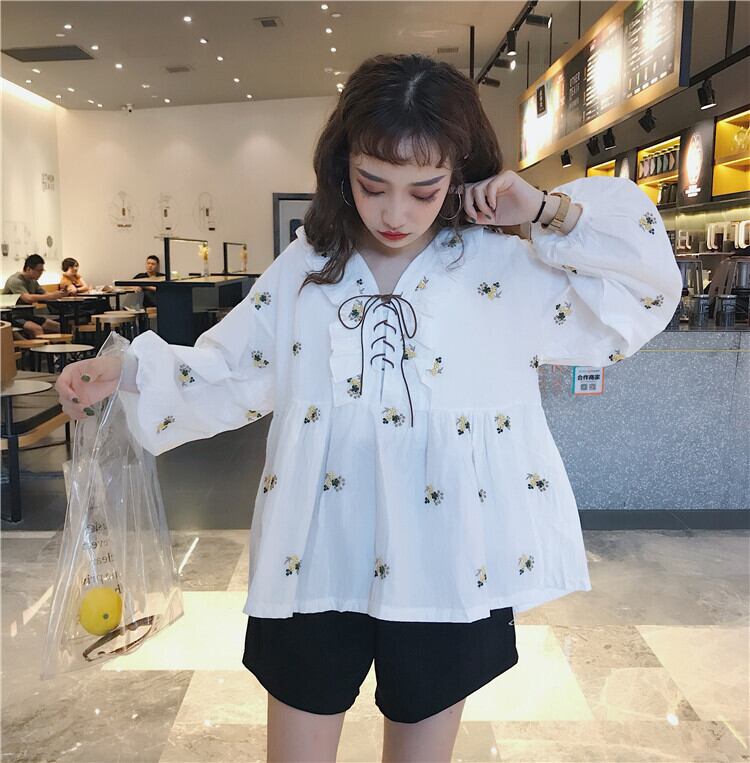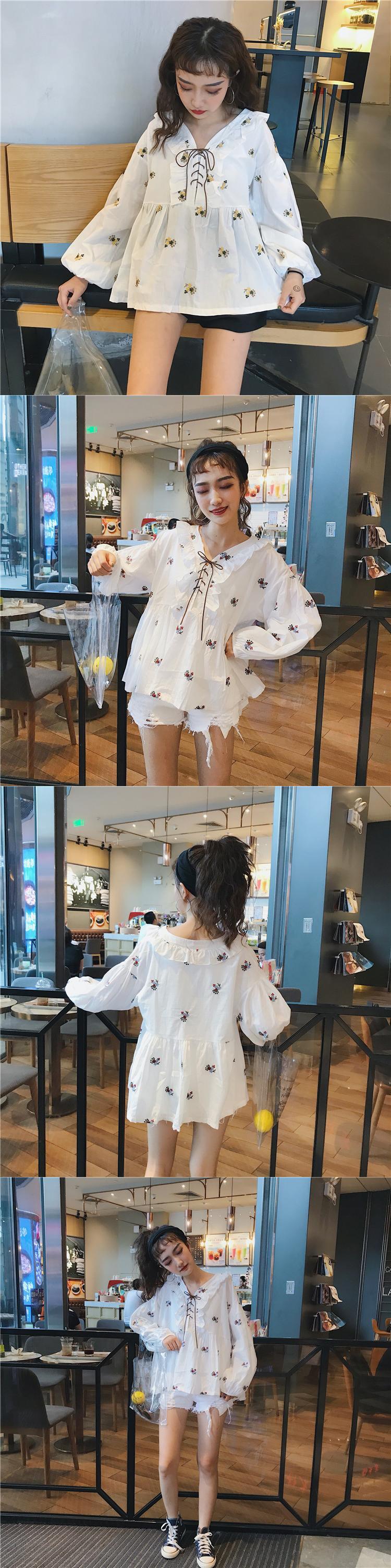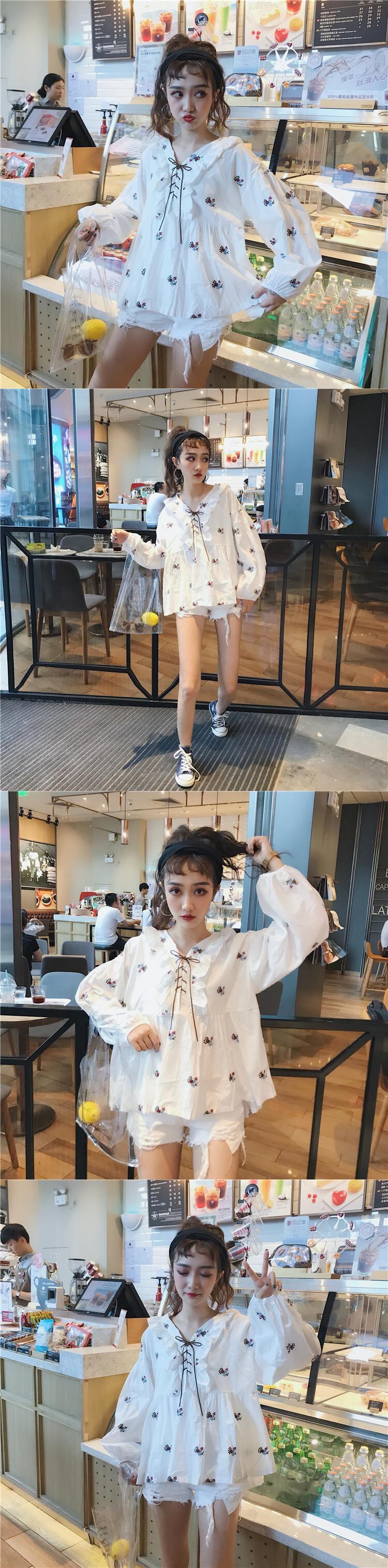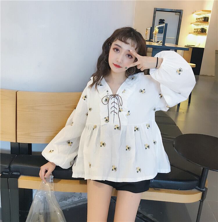 ✞ シャツブラウスレーススタンダード刺繍Vネック長袖スリーブ ロング レトロ スウィート ガーリー ✞ゴスロリ SM ミリ 甘ロリ クラロリ 和ロリ エレガント 黒ロリ 姫ロリ 華ロリ BB-BB44127217047