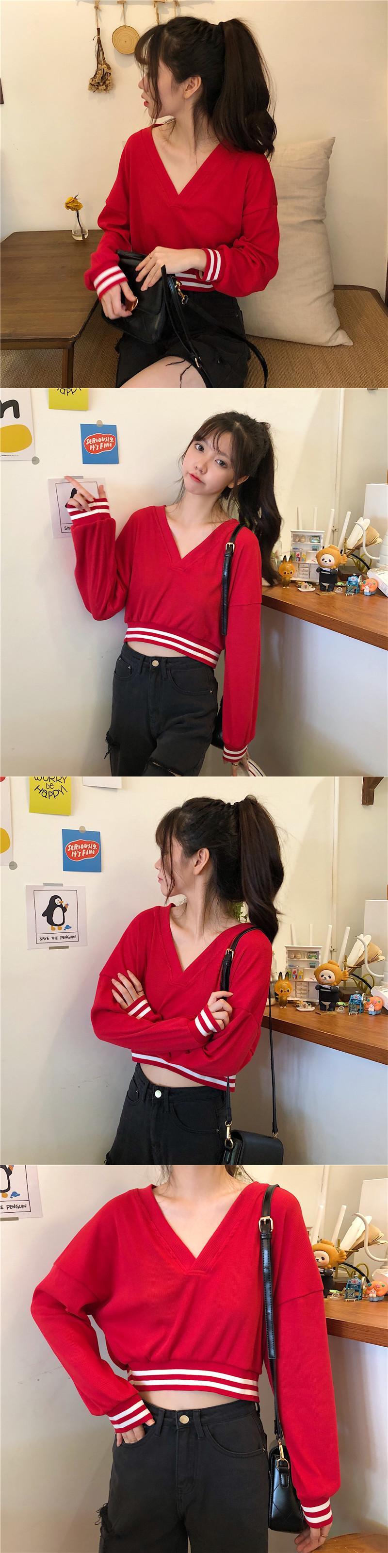 ✞ ♡レッドVネックショート★ストライプカジュアルセーター トップス 大人女子☆ ロング ✞ゴスロリ SM ミリ 甘ロリ クラロリ 和ロリ エレガント 黒ロリ 姫ロリ 華ロリ BB-BB19586577954