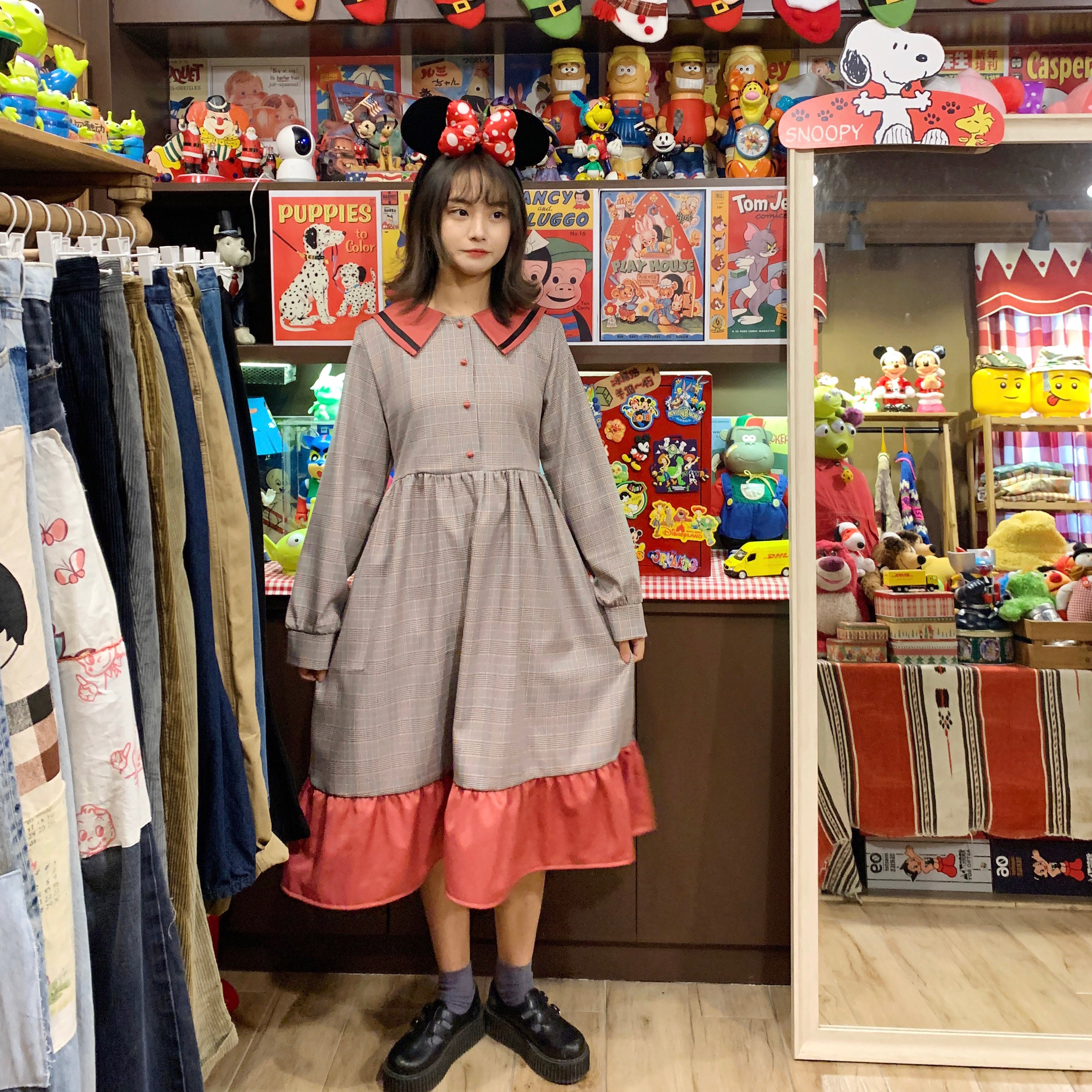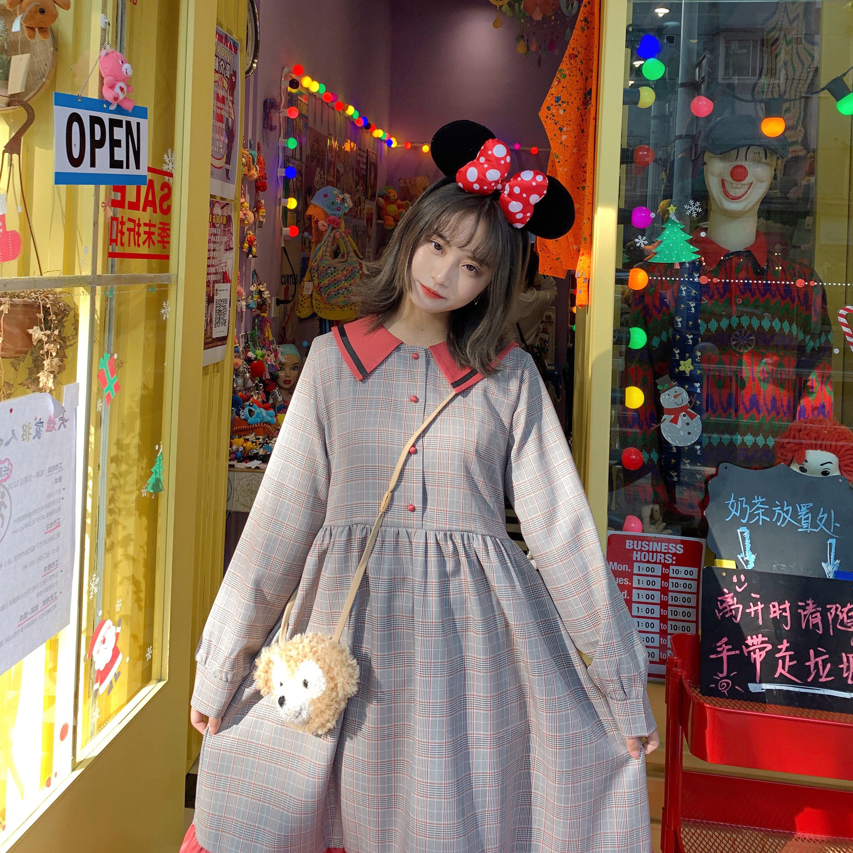 ✞ ♡カラーネイビーチェック柄ラッフル ロング スウィート ステッチ ✞ゴスロリ SM ミリ 甘ロリ クラロリ 和ロリ エレガント 黒ロリ 姫ロリ 華ロリ BB-BB98429216717