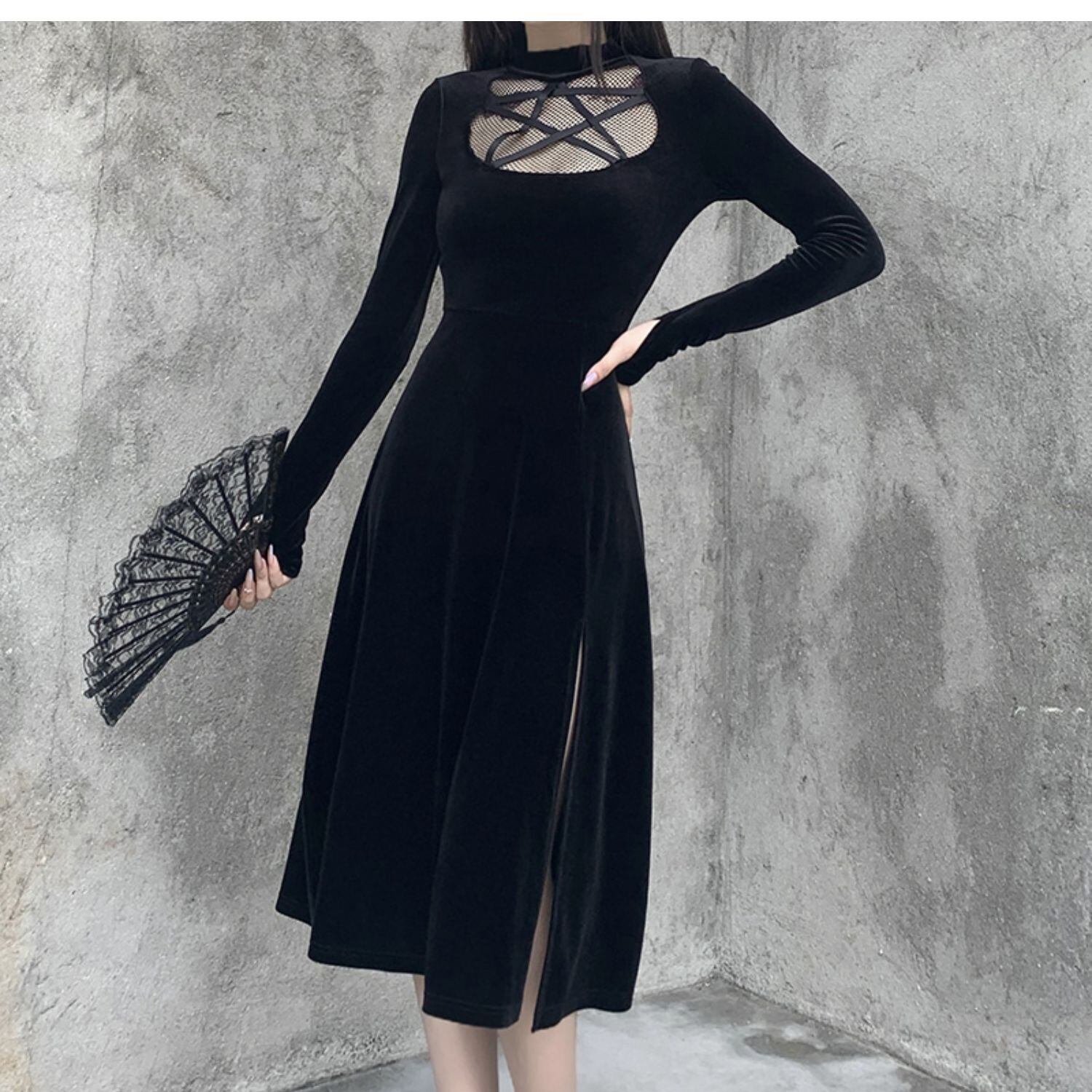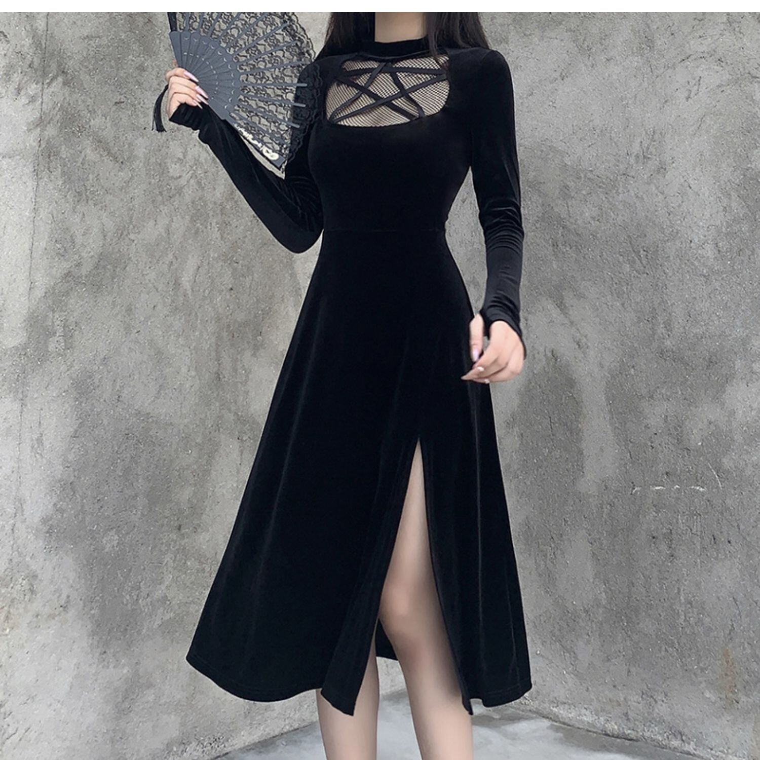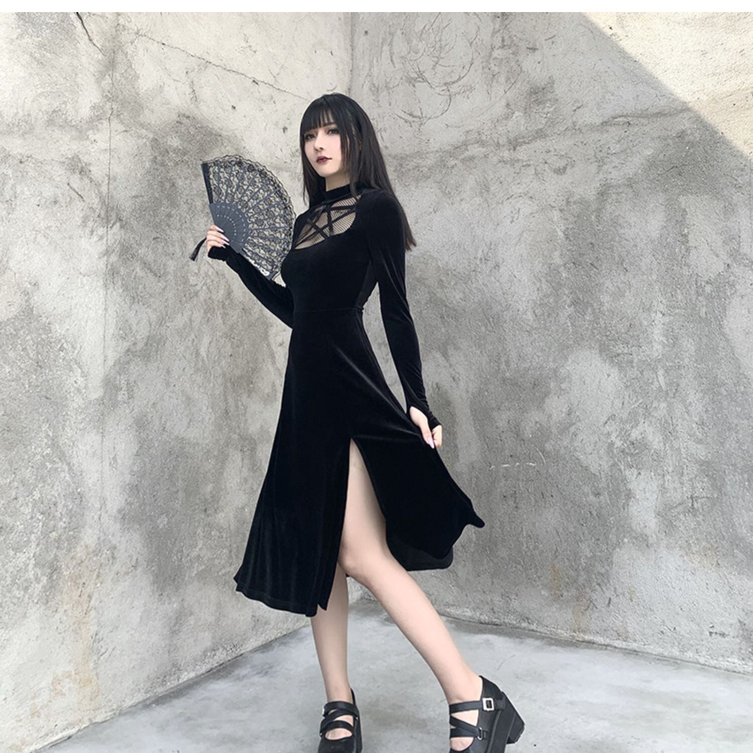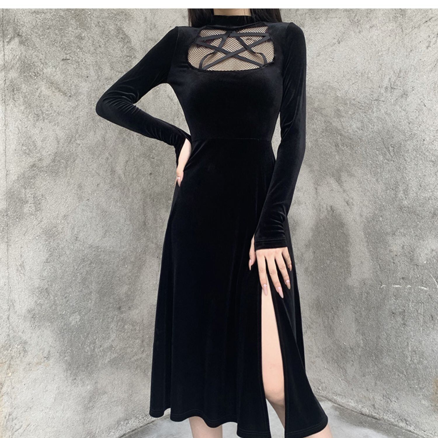 ✞✝✞ ブラック★♥カワイイ♥ダークスリットスカート ロング ✞✝✞ ゴスロリ SM ミリ 甘ロリ クラロリ 和ロリ エレガント 黒ロリ 姫ロリ 華ロリ AA-AA47439236701