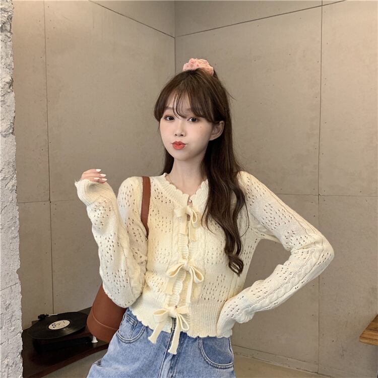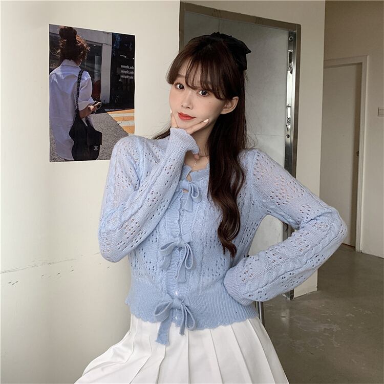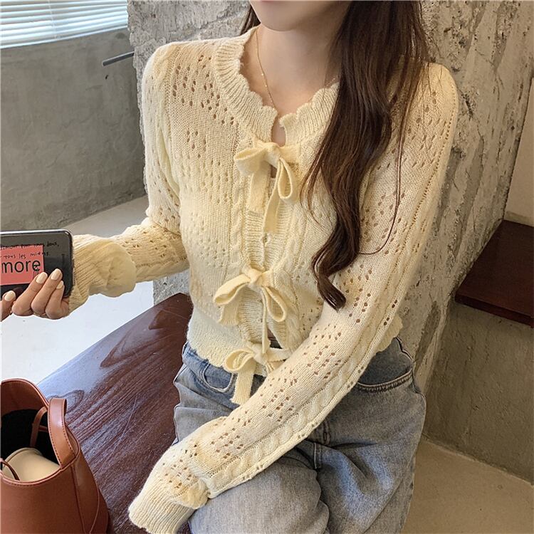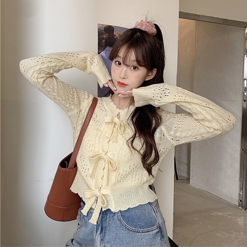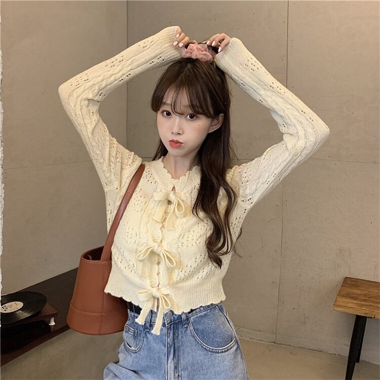 ✞ リボンラウンドネック♥カワイイ♥ニットカーディガンセーター コート スウィート ✞ゴスロリ SM ミリ 甘ロリ クラロリ 和ロリ エレガント 黒ロリ 姫ロリ 華ロリ BB-BB51010254571