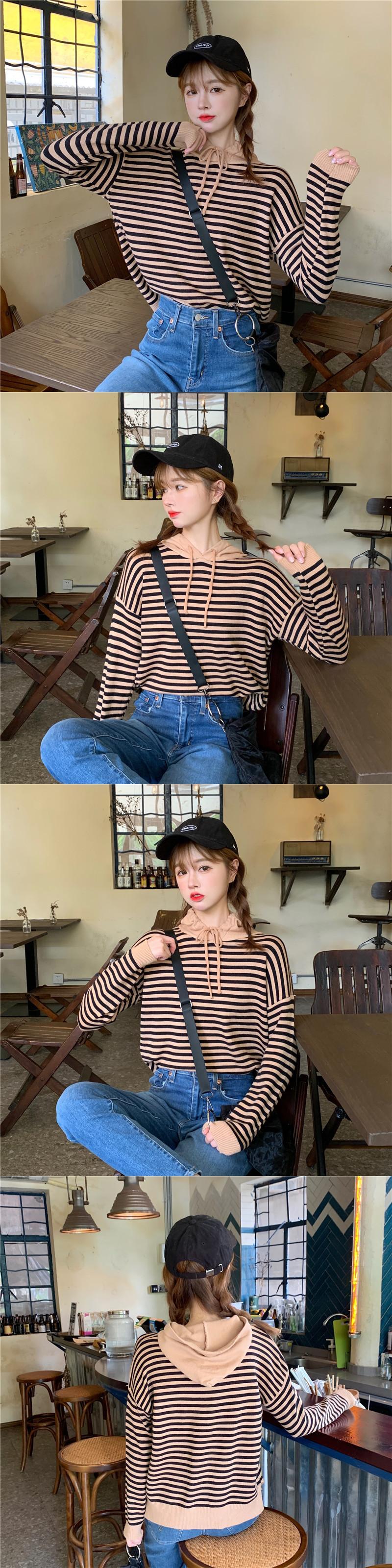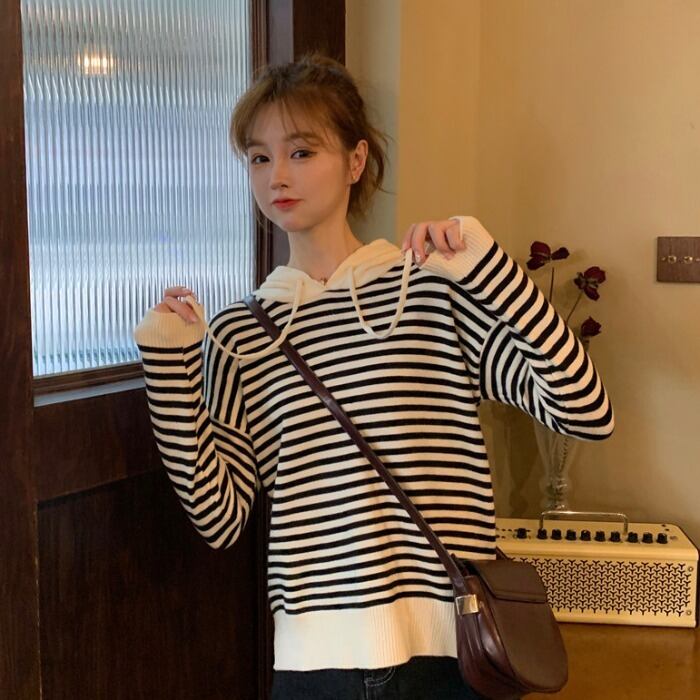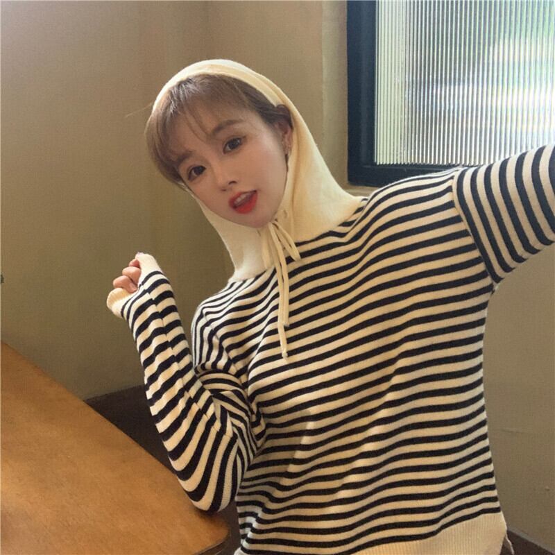 ✞ カジュアルセーター ストライプフード大人女子☆ ロング ✞ゴスロリ SM ミリ 甘ロリ クラロリ 和ロリ エレガント 黒ロリ 姫ロリ 華ロリ BB-BB98341320845