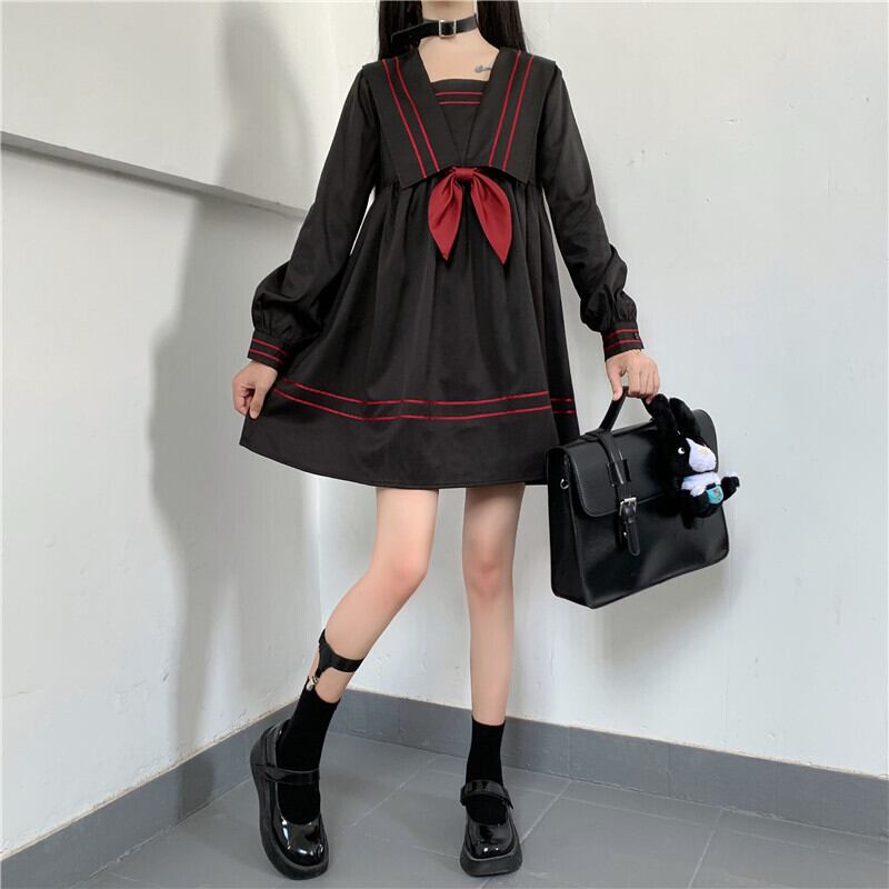 ✞ スカート ♡ダークブラックスタンダードネイビー長袖スリーブ ロング レトロ ✞ゴスロリ SM ミリ 甘ロリ クラロリ 和ロリ エレガント 黒ロリ 姫ロリ 華ロリ BB-BB67628643343