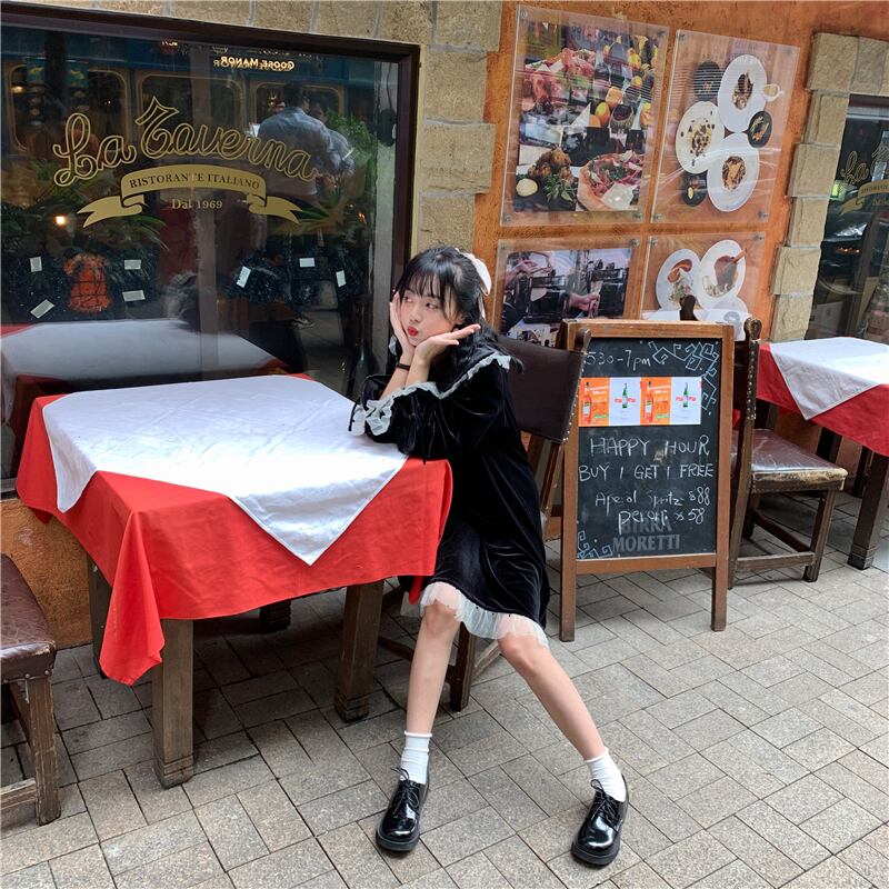 ✞ ベルベットレース刺繍ブラック♥カワイイ♥スタンダード レトロ スウィート ✞ゴスロリ SM ミリ 甘ロリ クラロリ 和ロリ エレガント 黒ロリ 姫ロリ 華ロリ BB-BB46385042413