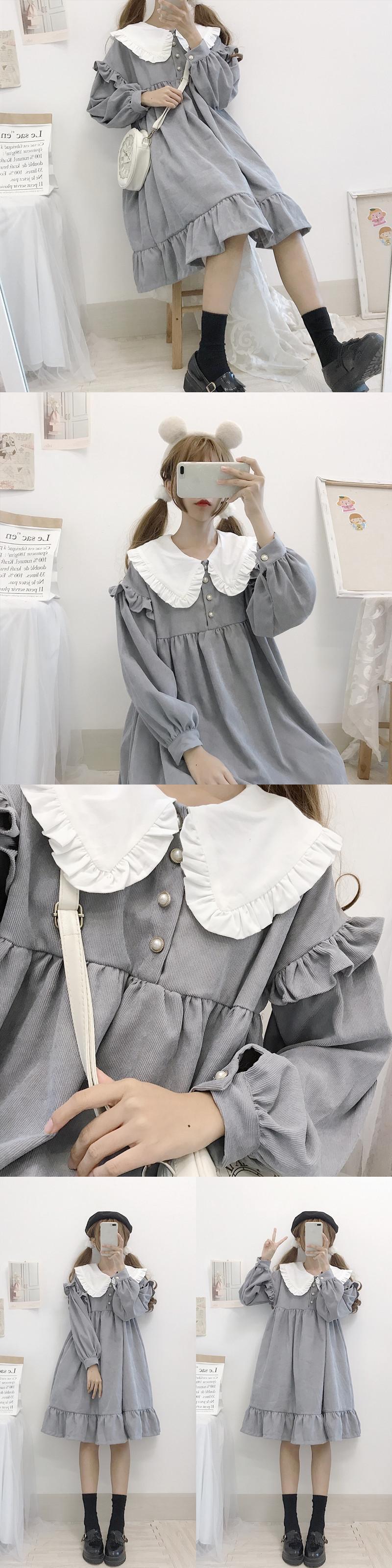 ✞ ♡ネイビーパールバックルスリーブコーデュロイラッフルスカート 大人女子☆ スウィート 真珠 ✞ゴスロリ SM ミリ 甘ロリ クラロリ 和ロリ エレガント 黒ロリ 姫ロリ 華ロリ BB-BB12260300816