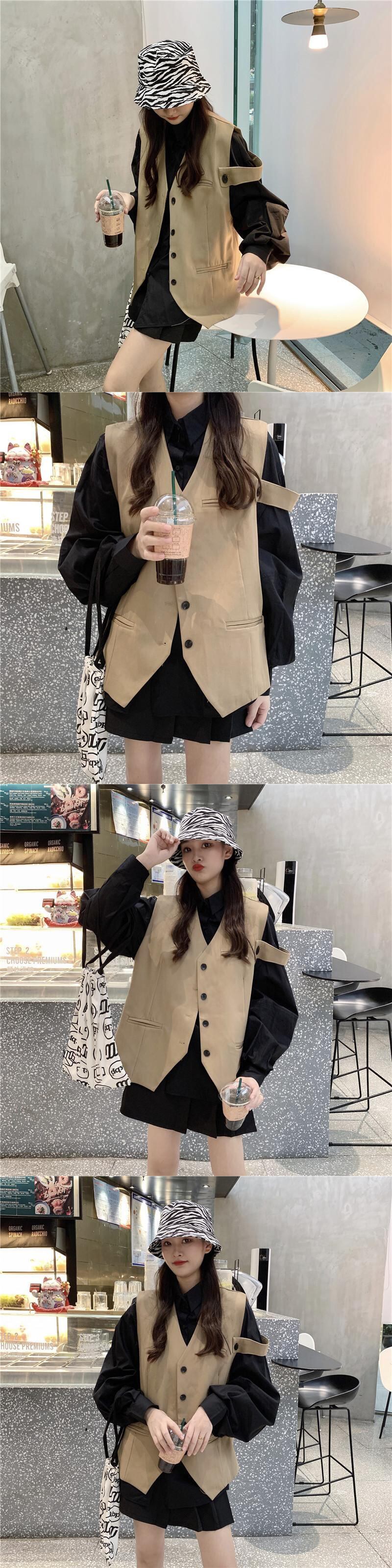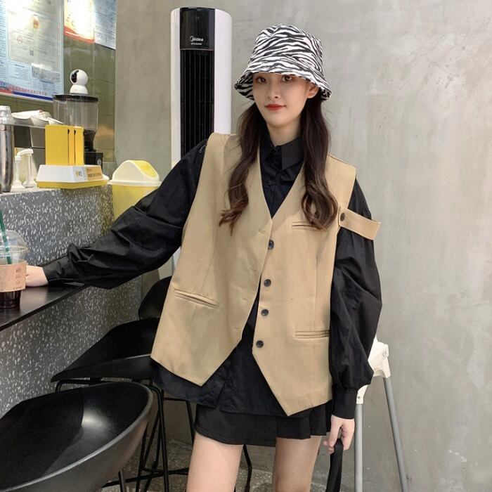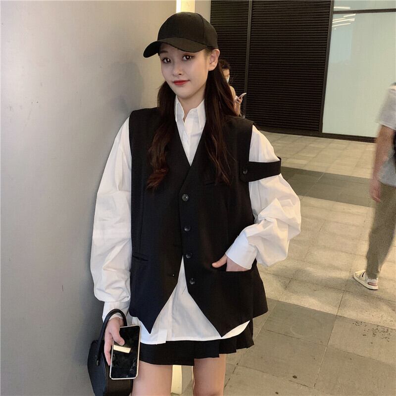 色:白のシャツ,黒いシャツ,黒のベスト,カーキベストワンピース