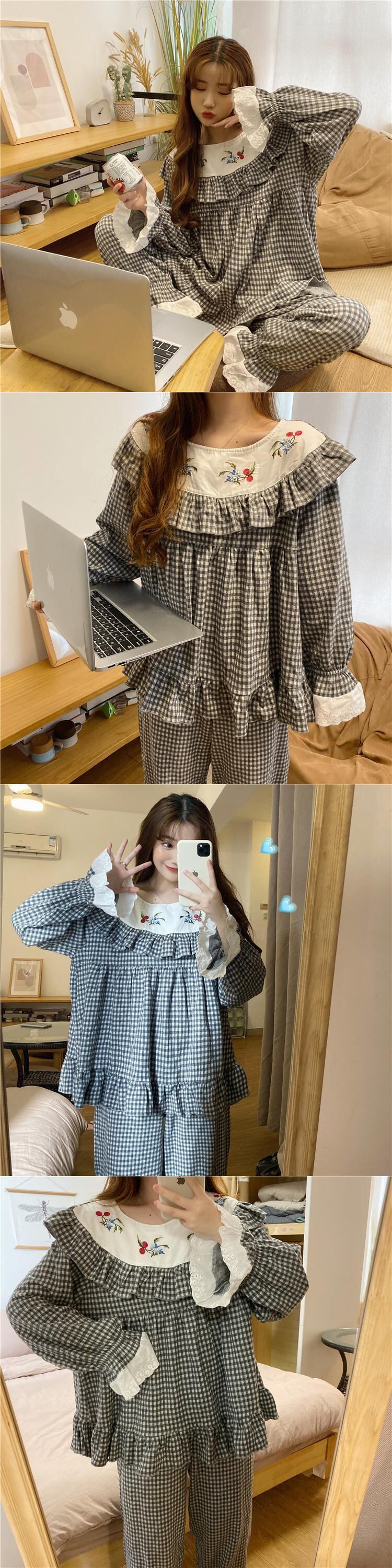 ✞ 花柄刺繍ラウンドネックチェック柄 スウィート フラワーデザイン ✞ゴスロリ SM ミリ 甘ロリ クラロリ 和ロリ エレガント 黒ロリ 姫ロリ 華ロリ BB-BB21423258776