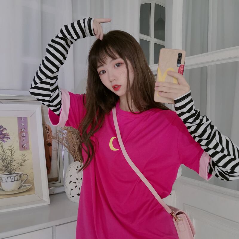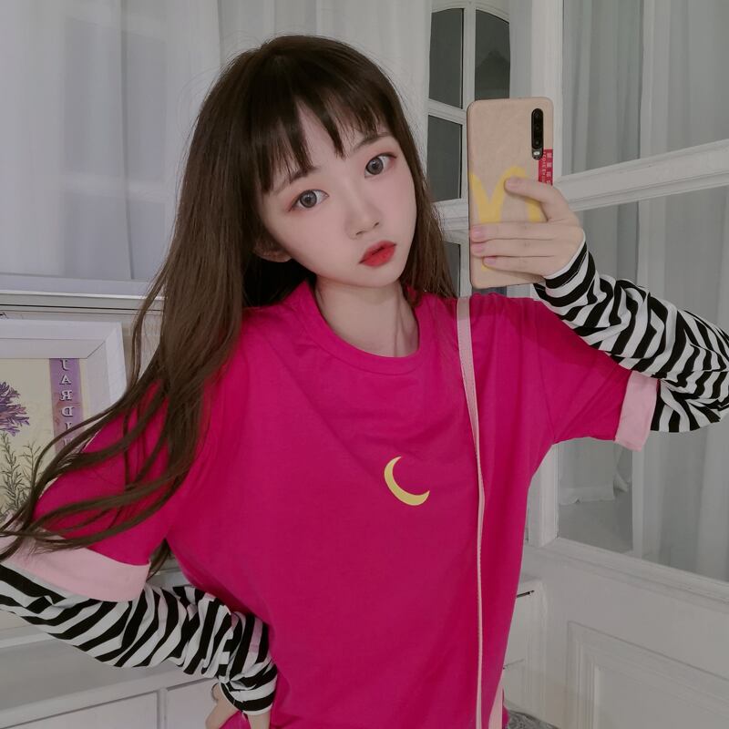 ✞ Tシャツ ♡ストライププリントトップス ロング スウィート ✞ゴスロリ SM ミリ 甘ロリ クラロリ 和ロリ エレガント 黒ロリ 姫ロリ 華ロリ BB-BB49683626904