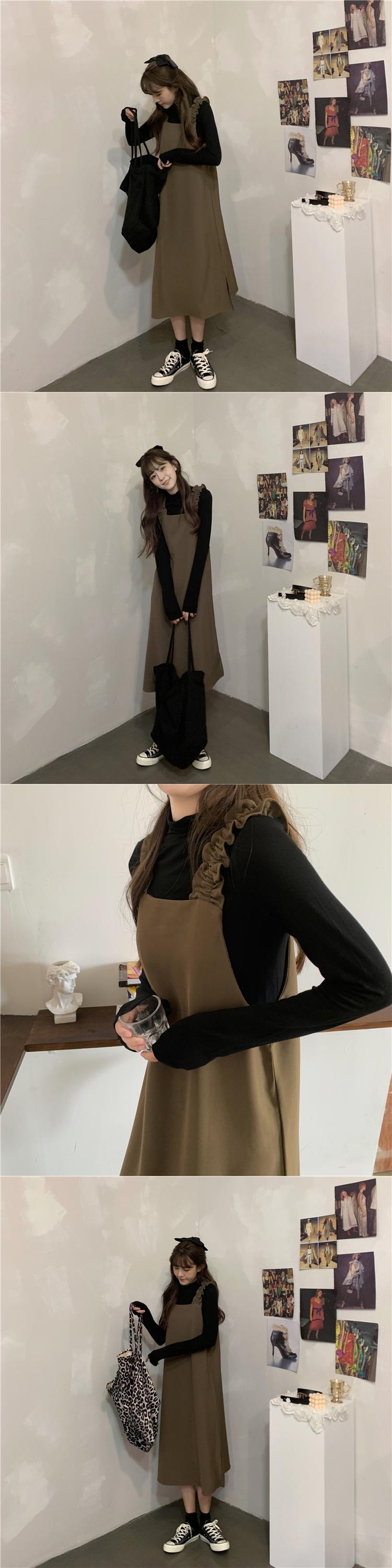 色:ブラックベースシャツワンピース,ホワイトベースシャツワンピース,ブラックストラップスカートワンピース,コーヒーカラーストラップワンピース