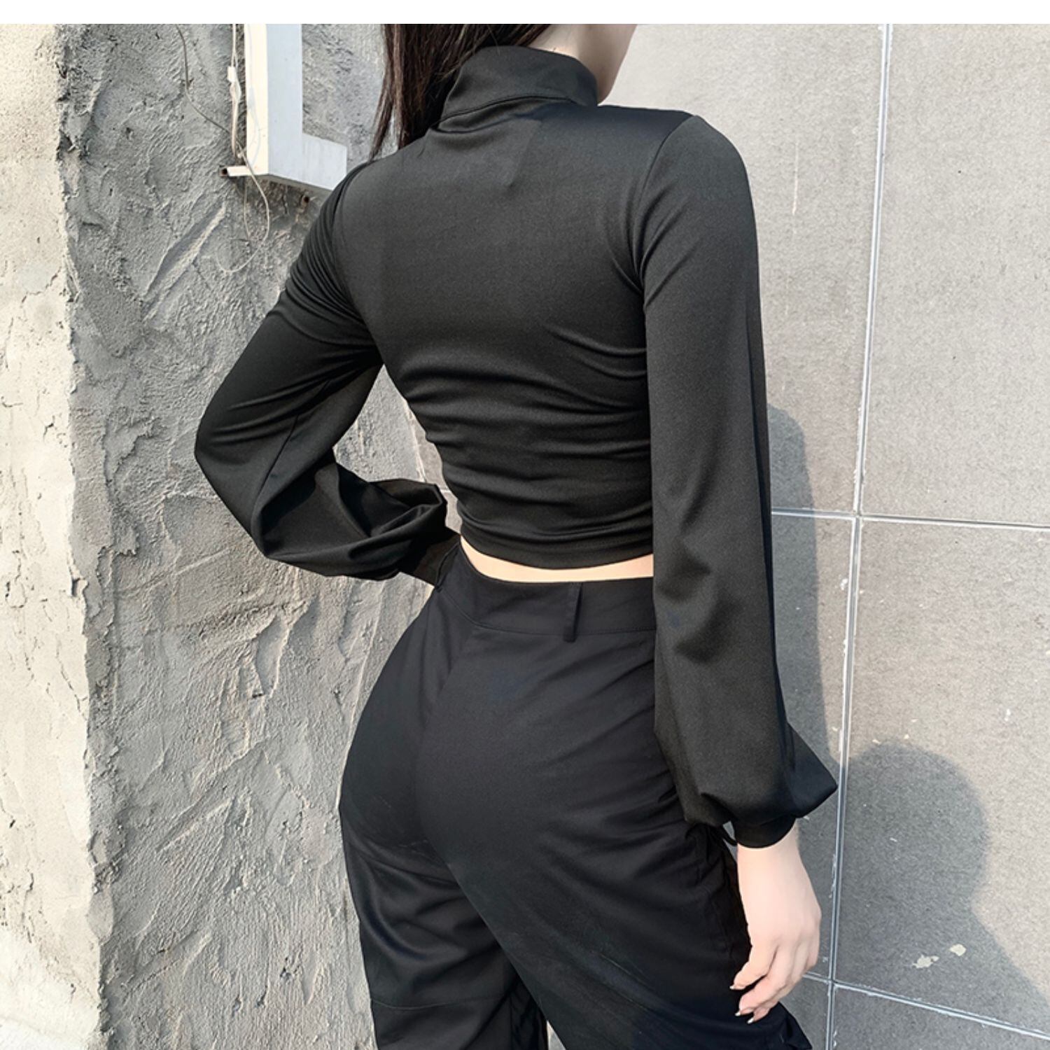 ✞✝✞ スリーブTシャツ ブラックショート♥カワイイ♥トップス ロング ランタンスリーブ ✞✝✞ ゴスロリ SM ミリ 甘ロリ クラロリ 和ロリ エレガント 黒ロリ 姫ロリ 華ロリ AA-AA9496456350