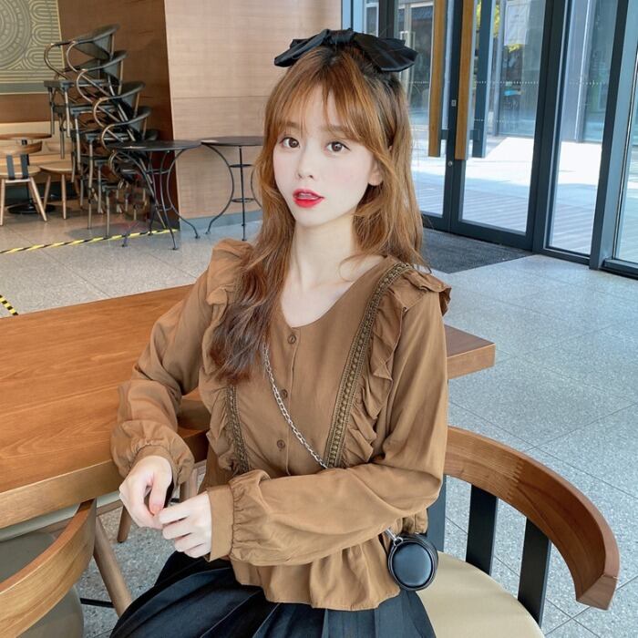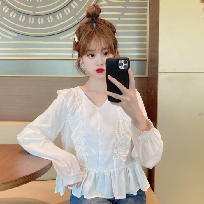 ✞ スタンダードVネック♥カワイイ♥スリーブ長袖シャツブラウスブラウス ♡ ロング レトロ スウィート ✞ゴスロリ SM ミリ 甘ロリ クラロリ 和ロリ エレガント 黒ロリ 姫ロリ 華ロリ BB-BB856262256