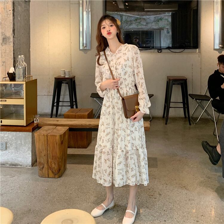 ✞ 長袖スリーブ★スタンダード花柄シフォンラッフルスカート ロング レトロ スウィート ✞ゴスロリ SM ミリ 甘ロリ クラロリ 和ロリ エレガント 黒ロリ 姫ロリ 華ロリ BB-BB51634579124