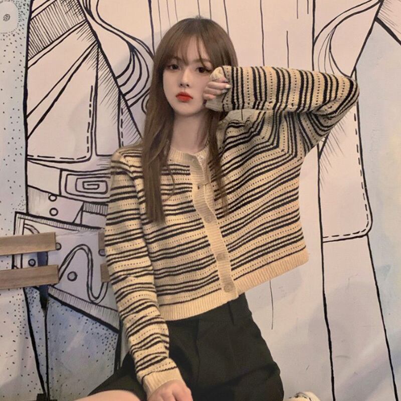 ✞ スタンダードストライプセーター 大人女子☆ショート♡ニットカーディガンジャケット レトロ ✞ゴスロリ SM ミリ 甘ロリ クラロリ 和ロリ エレガント 黒ロリ 姫ロリ 華ロリ BB-BB87016177065