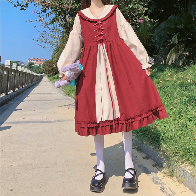 ✞ ネイビーカラークロスストラップ スリム ランタンスリーブ スウィート ✞ゴスロリ SM ミリ 甘ロリ クラロリ 和ロリ エレガント 黒ロリ 姫ロリ 華ロリ BB-BB89406703095