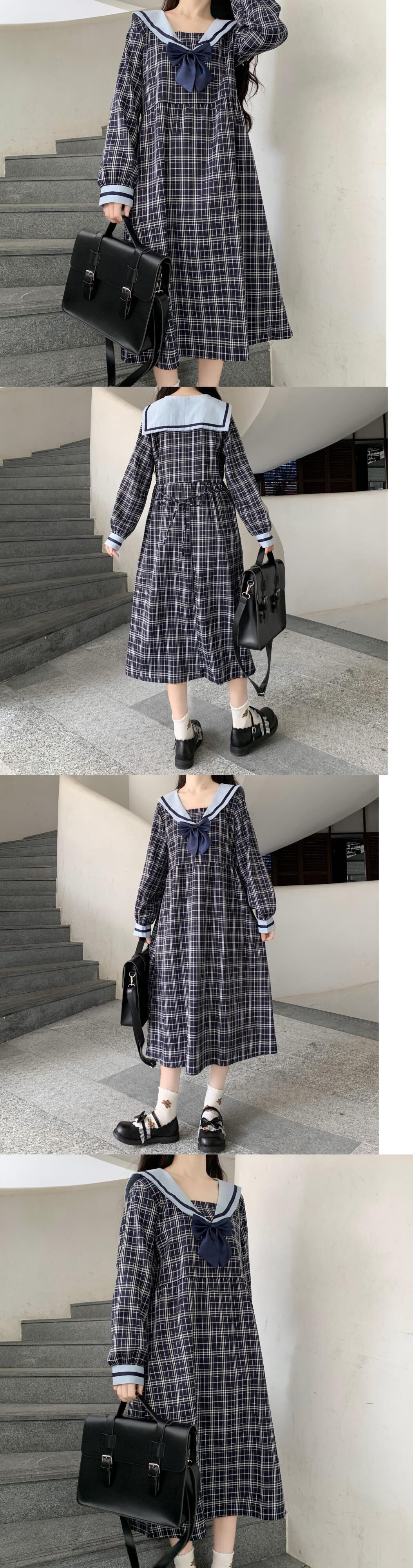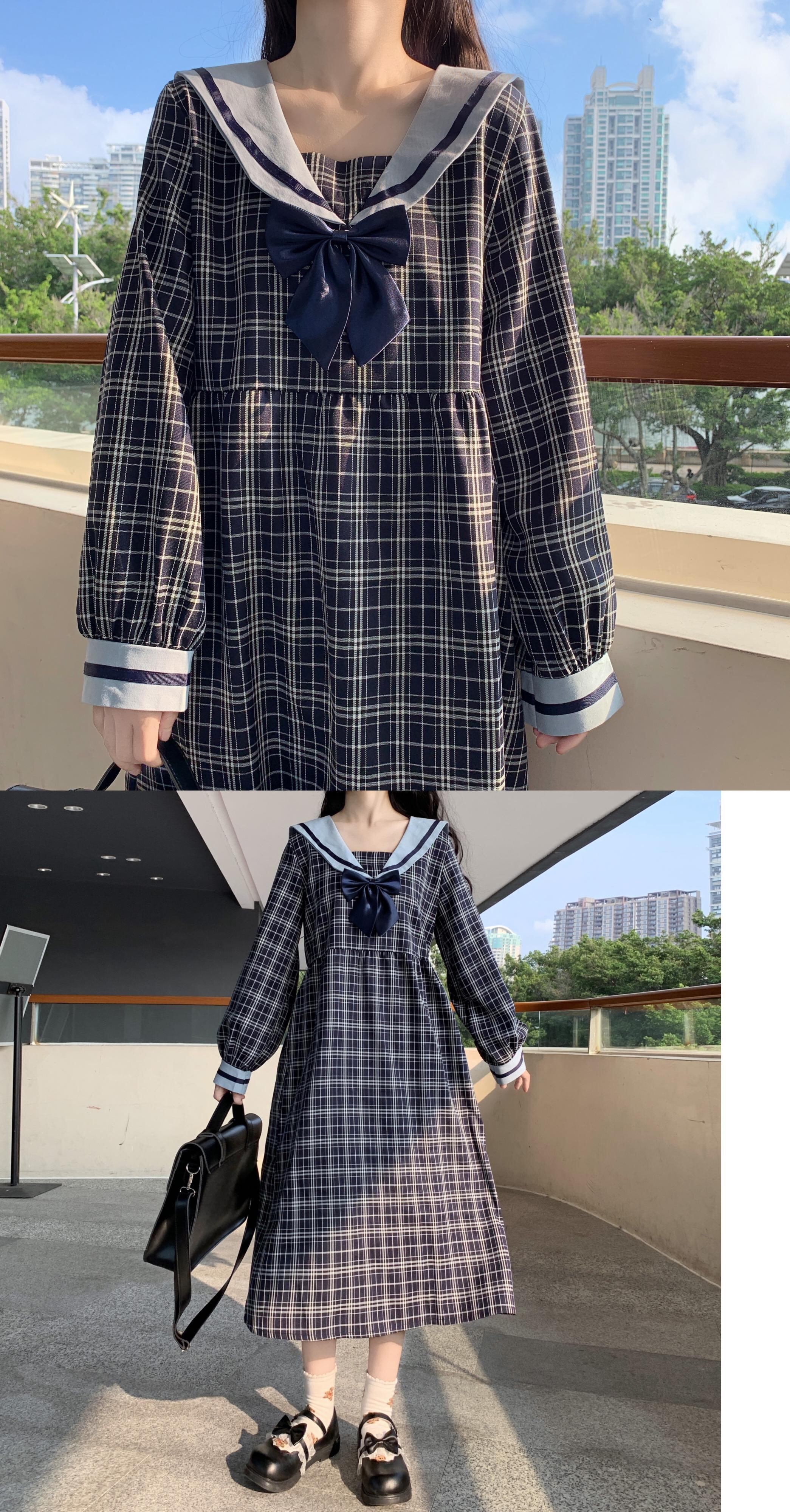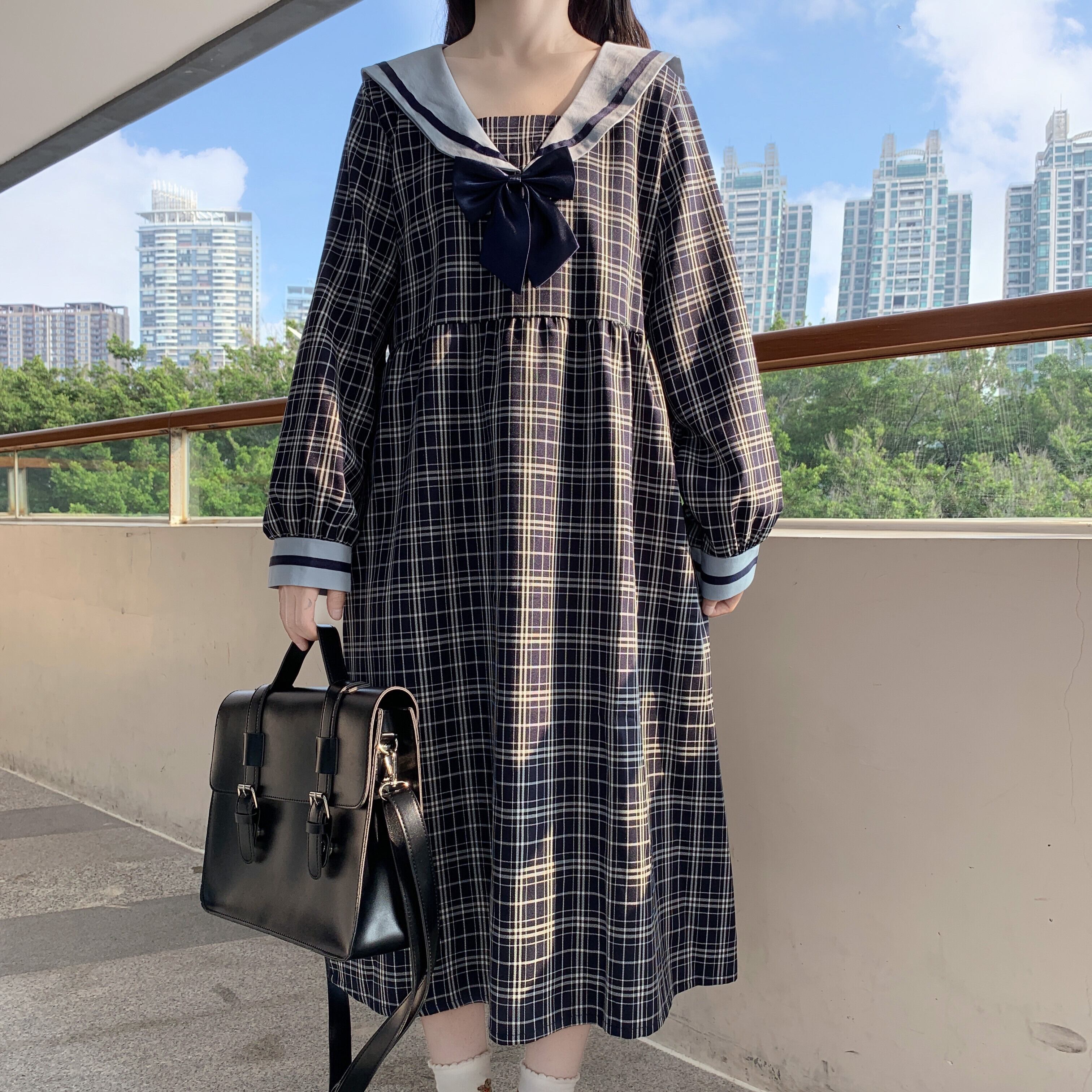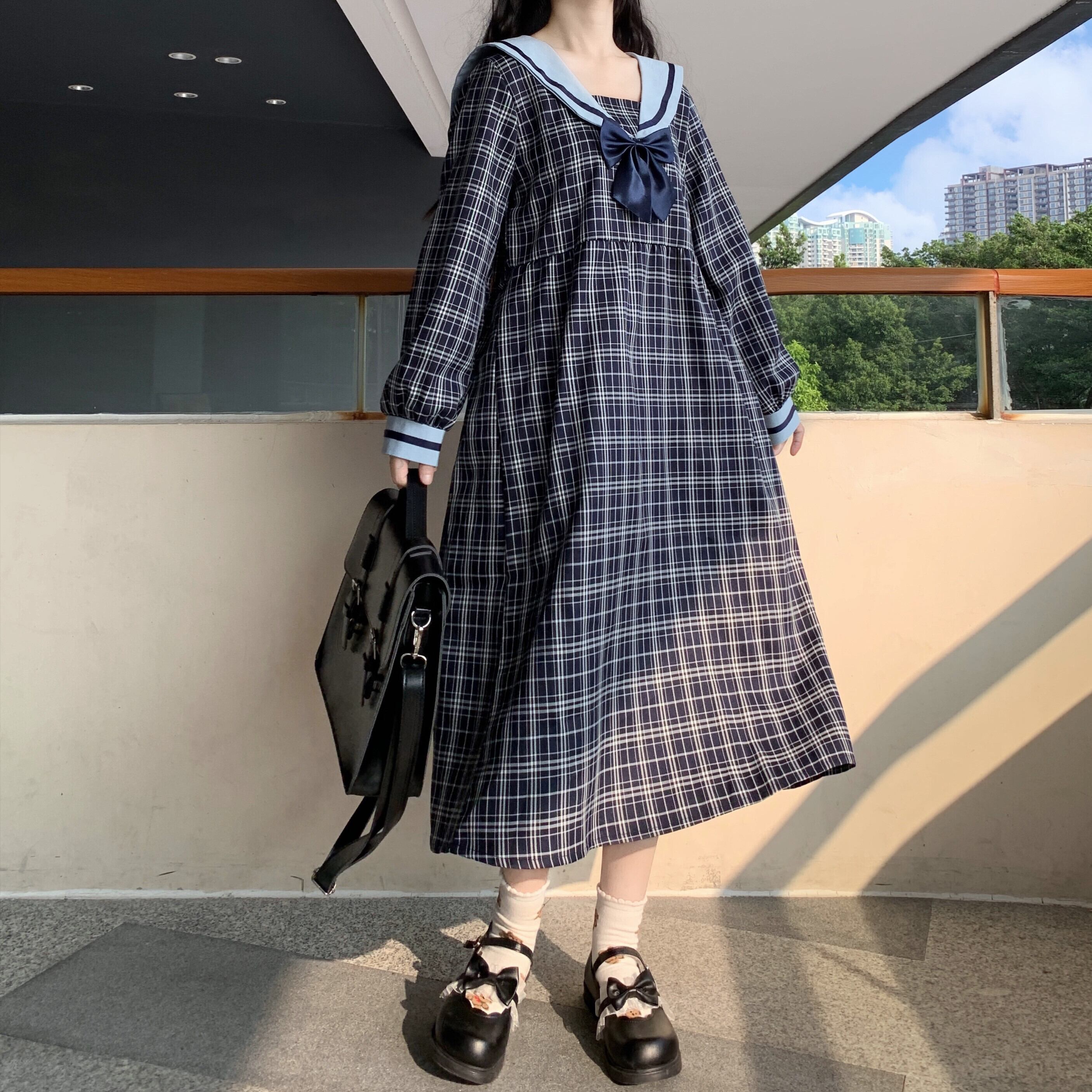 ✞ ネイビー♡ロングスリムチェック柄スカート 長袖 スウィート ✞ゴスロリ SM ミリ 甘ロリ クラロリ 和ロリ エレガント 黒ロリ 姫ロリ 華ロリ BB-BB39164717640