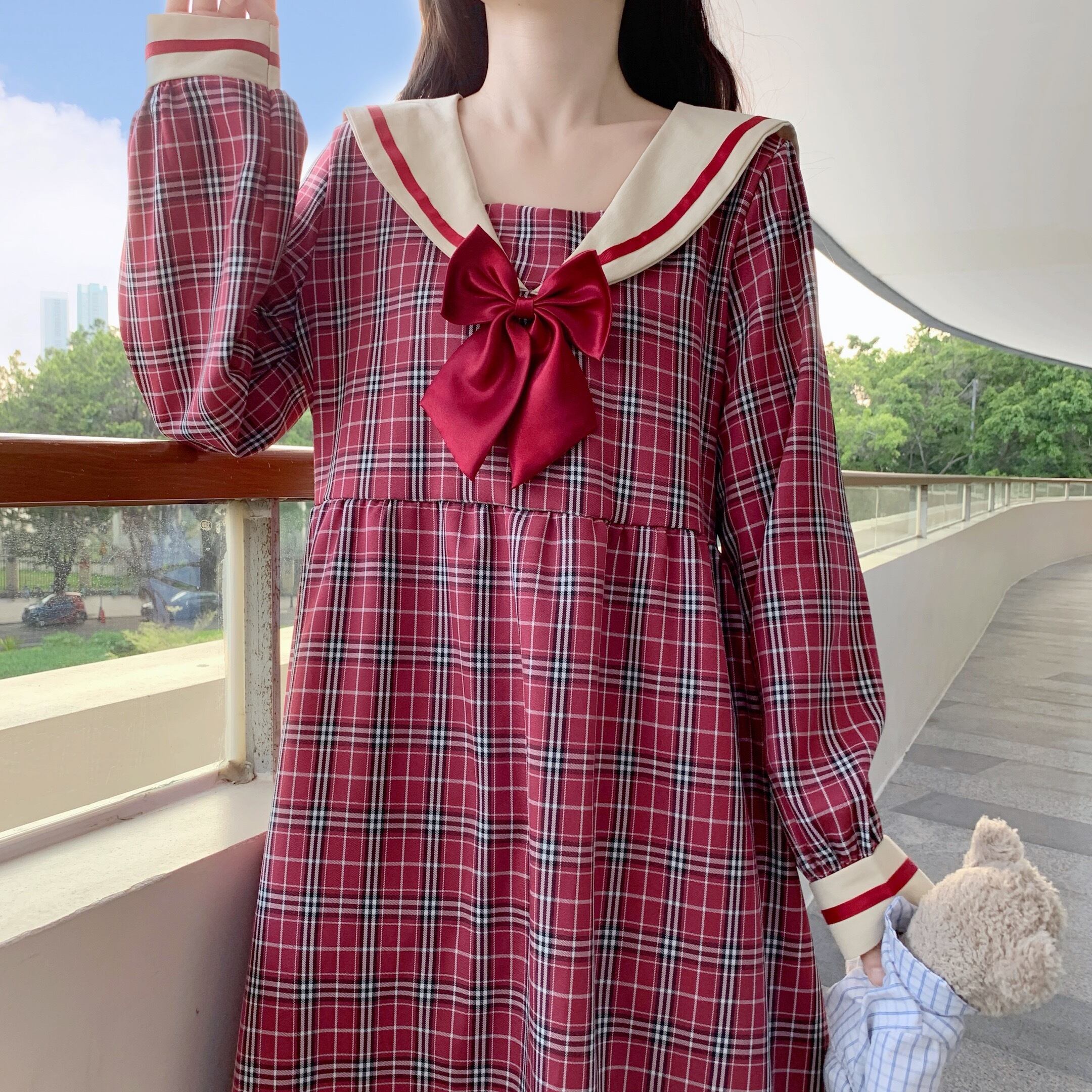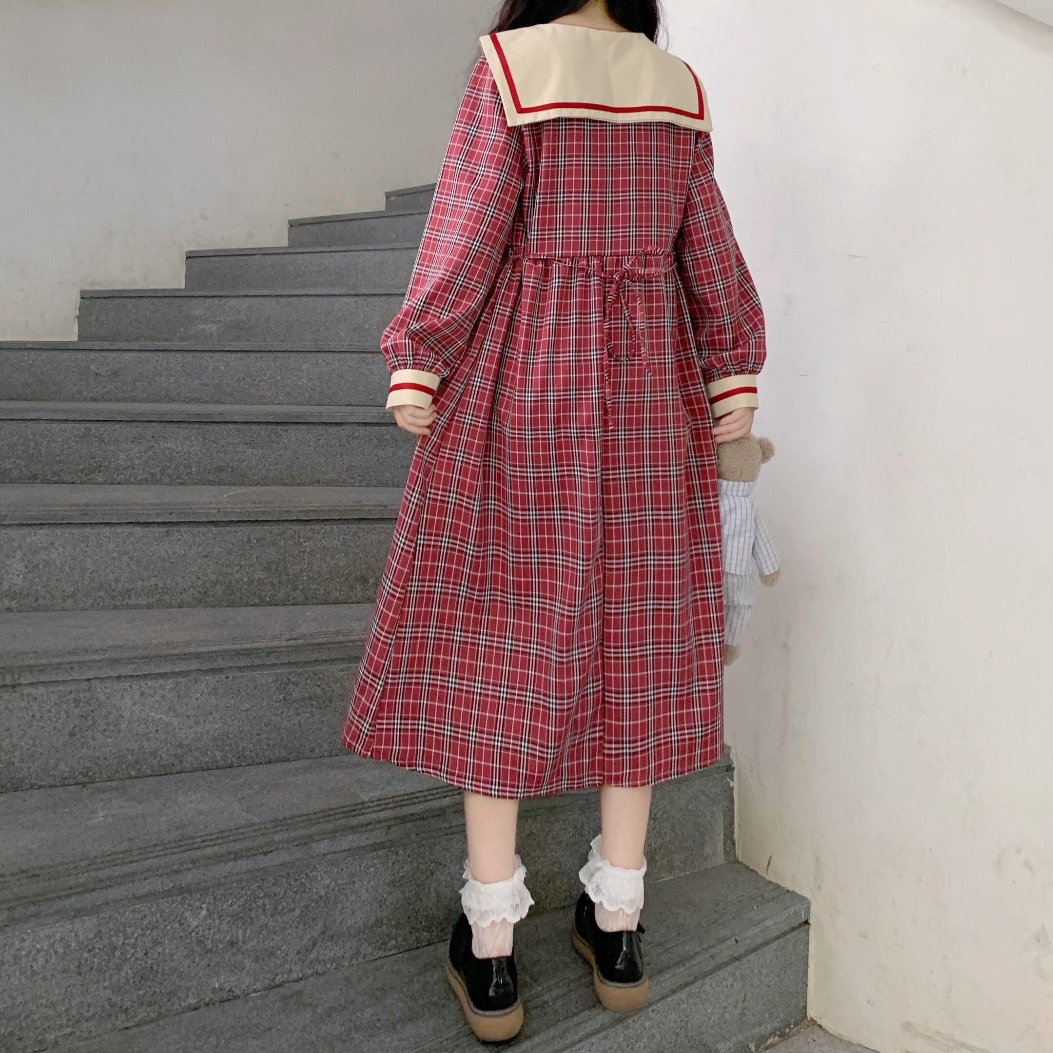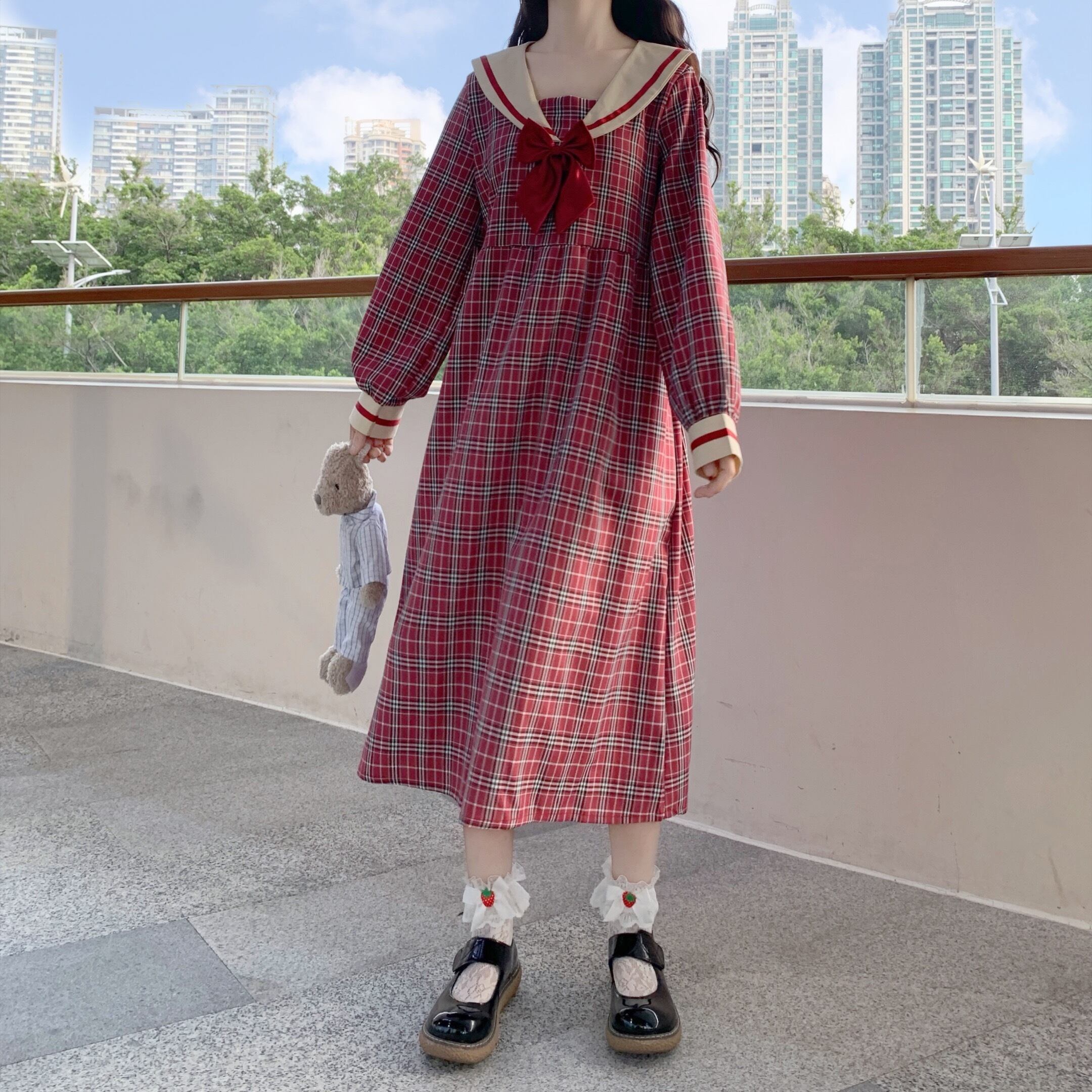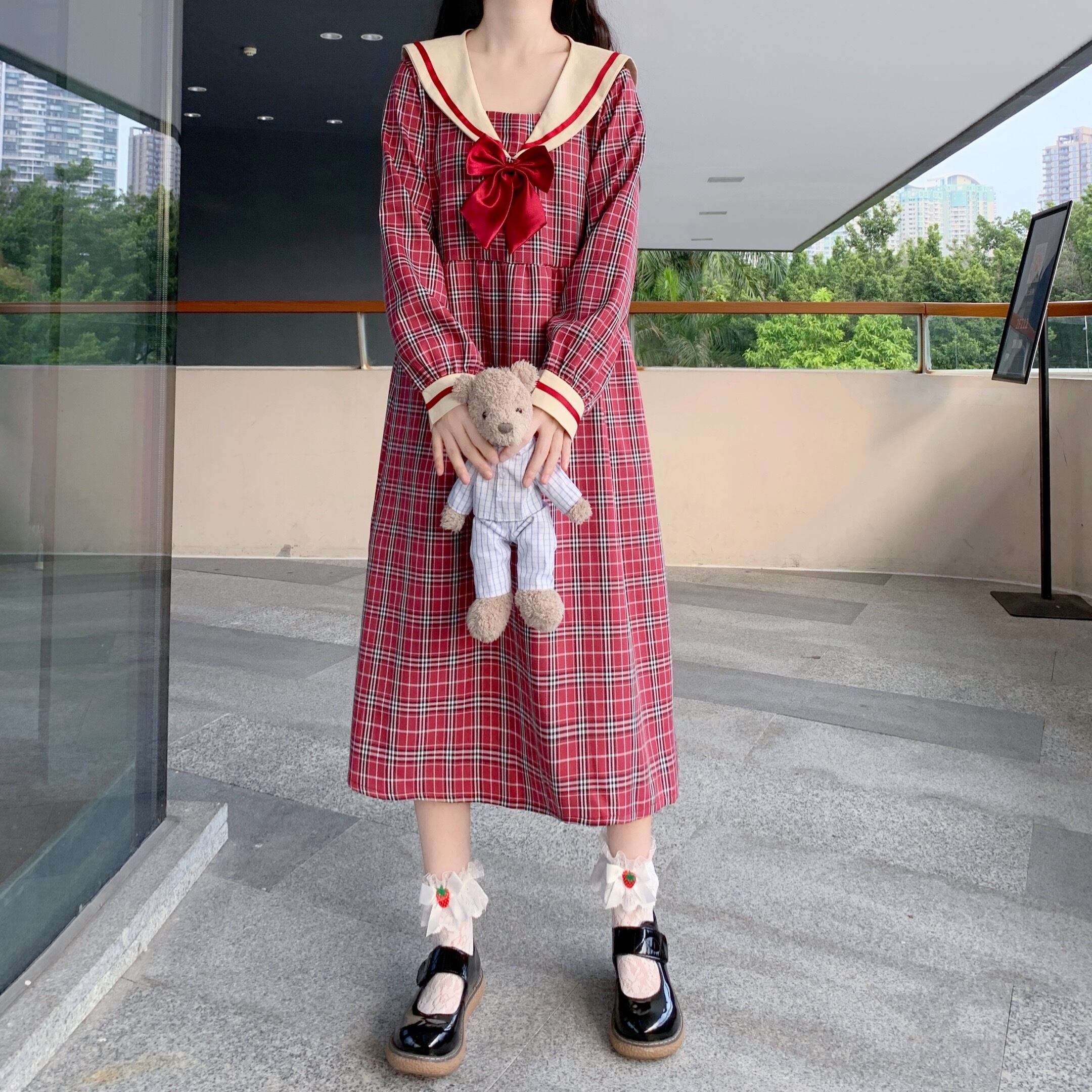 ✞ ネイビー♡ロングスリムチェック柄スカート 長袖 スウィート ✞ゴスロリ SM ミリ 甘ロリ クラロリ 和ロリ エレガント 黒ロリ 姫ロリ 華ロリ BB-BB39164717640