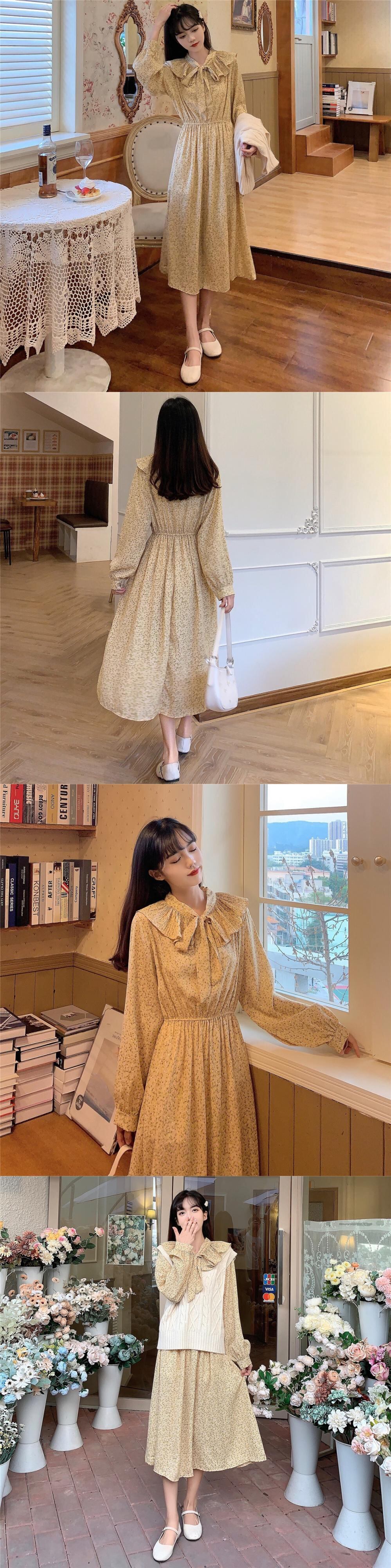 ✞ プリーツロング花柄 リボン 長袖 スウィート ✞ゴスロリ SM ミリ 甘ロリ クラロリ 和ロリ エレガント 黒ロリ 姫ロリ 華ロリ BB-BB65311126280