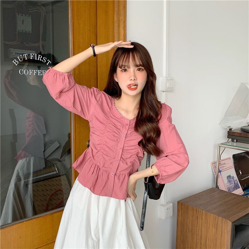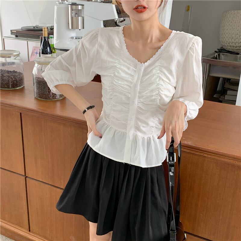 ✞ Vネックプリーツスリムシャツブラウス ロング スウィート ✞ゴスロリ SM ミリ 甘ロリ クラロリ 和ロリ エレガント 黒ロリ 姫ロリ 華ロリ BB-BB62637160848