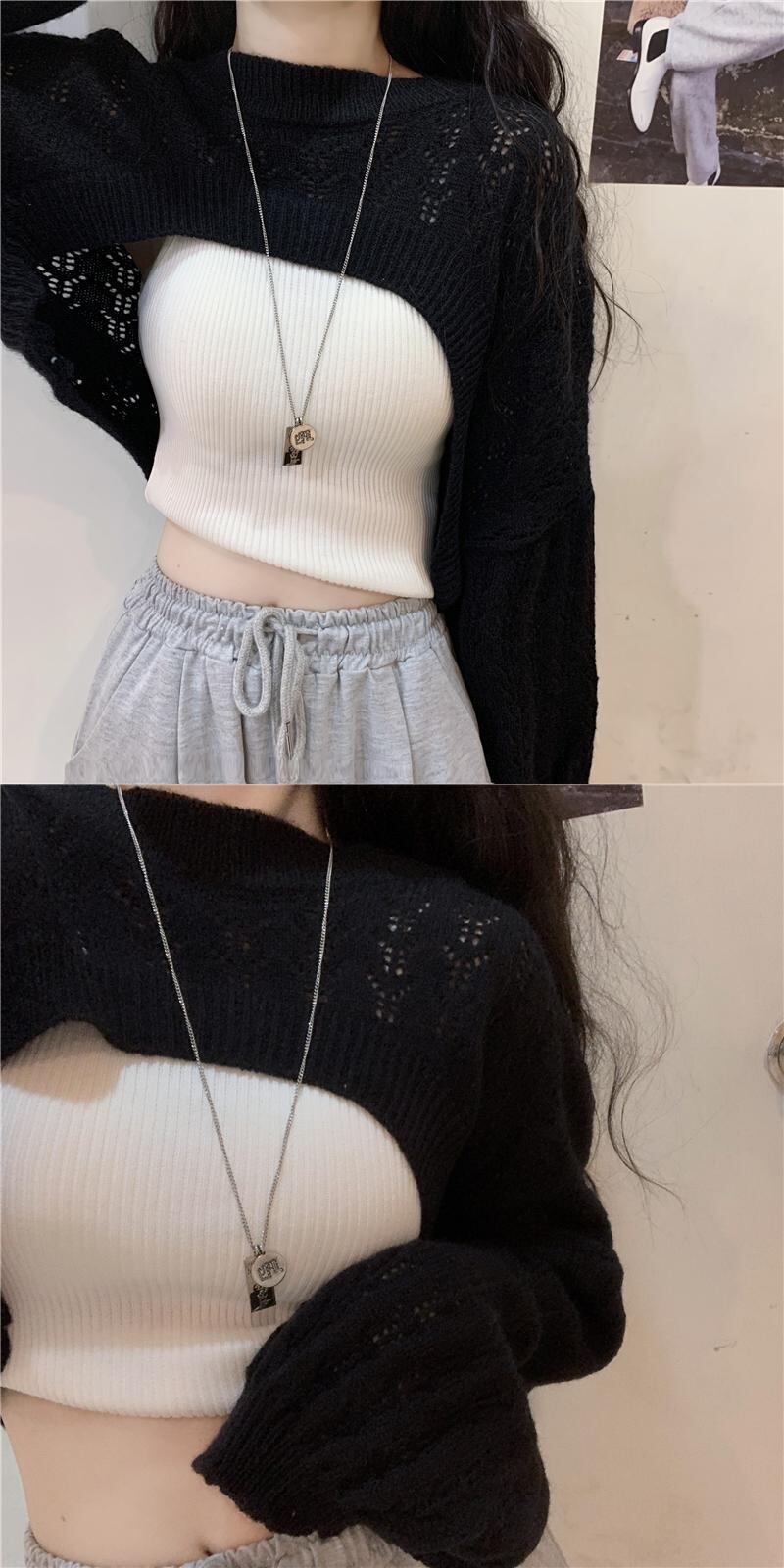 色:白いセーターブラウスワンピース,黒セーターブラウスワンピース,ホワイトスリングシングルピース,ブラックスリングシングルピース