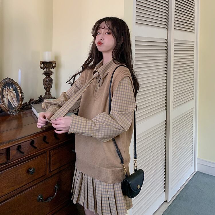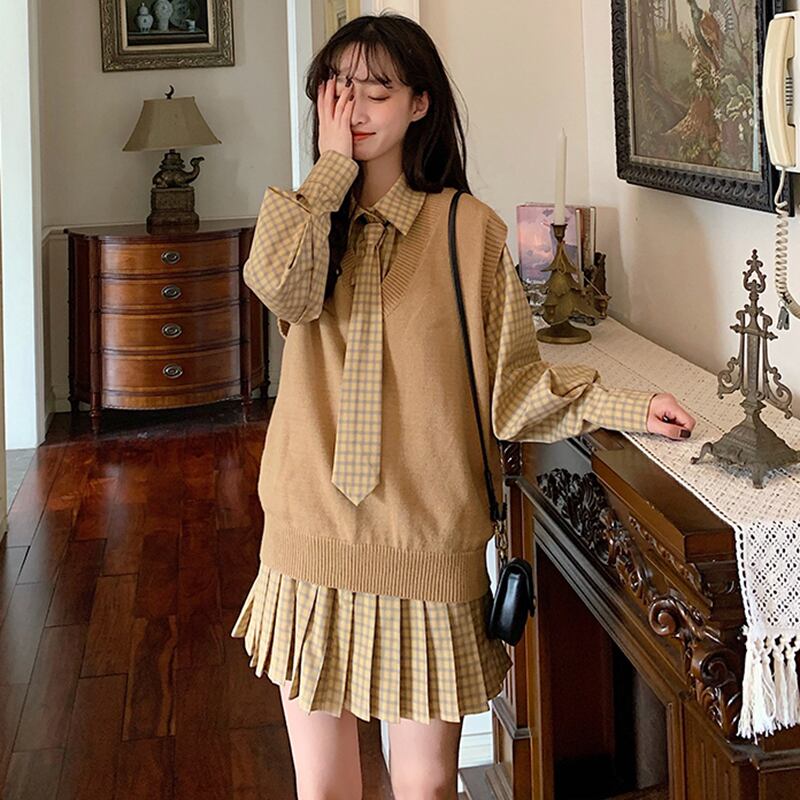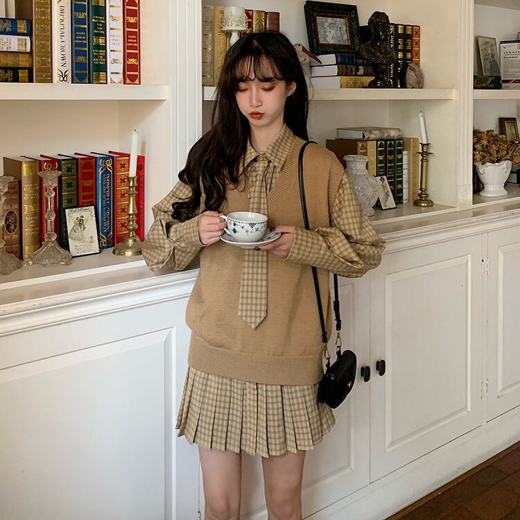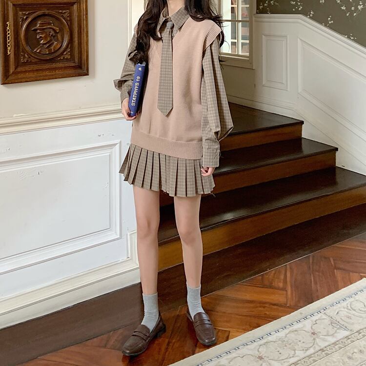 ✞ ドレス ワンピーススタンダードチェック柄プリーツスカート シャツブラウス レトロ スウィート ステッチ ✞ゴスロリ SM ミリ 甘ロリ クラロリ 和ロリ エレガント 黒ロリ 姫ロリ 華ロリ BB-BB19168724823